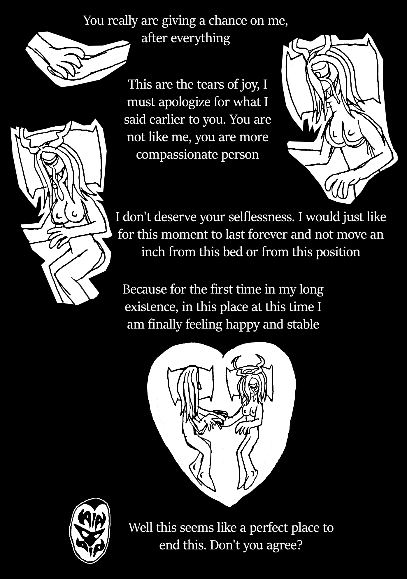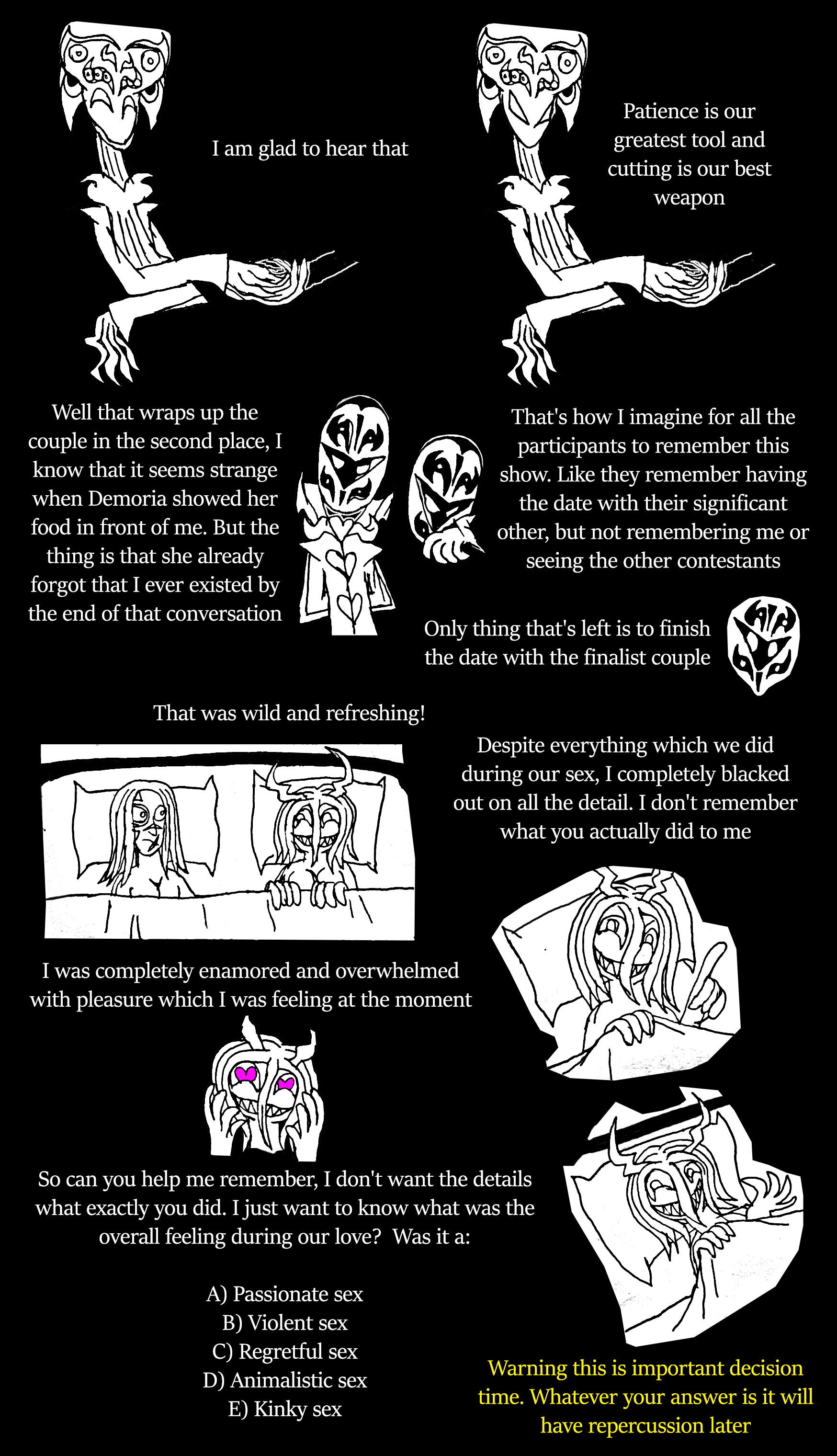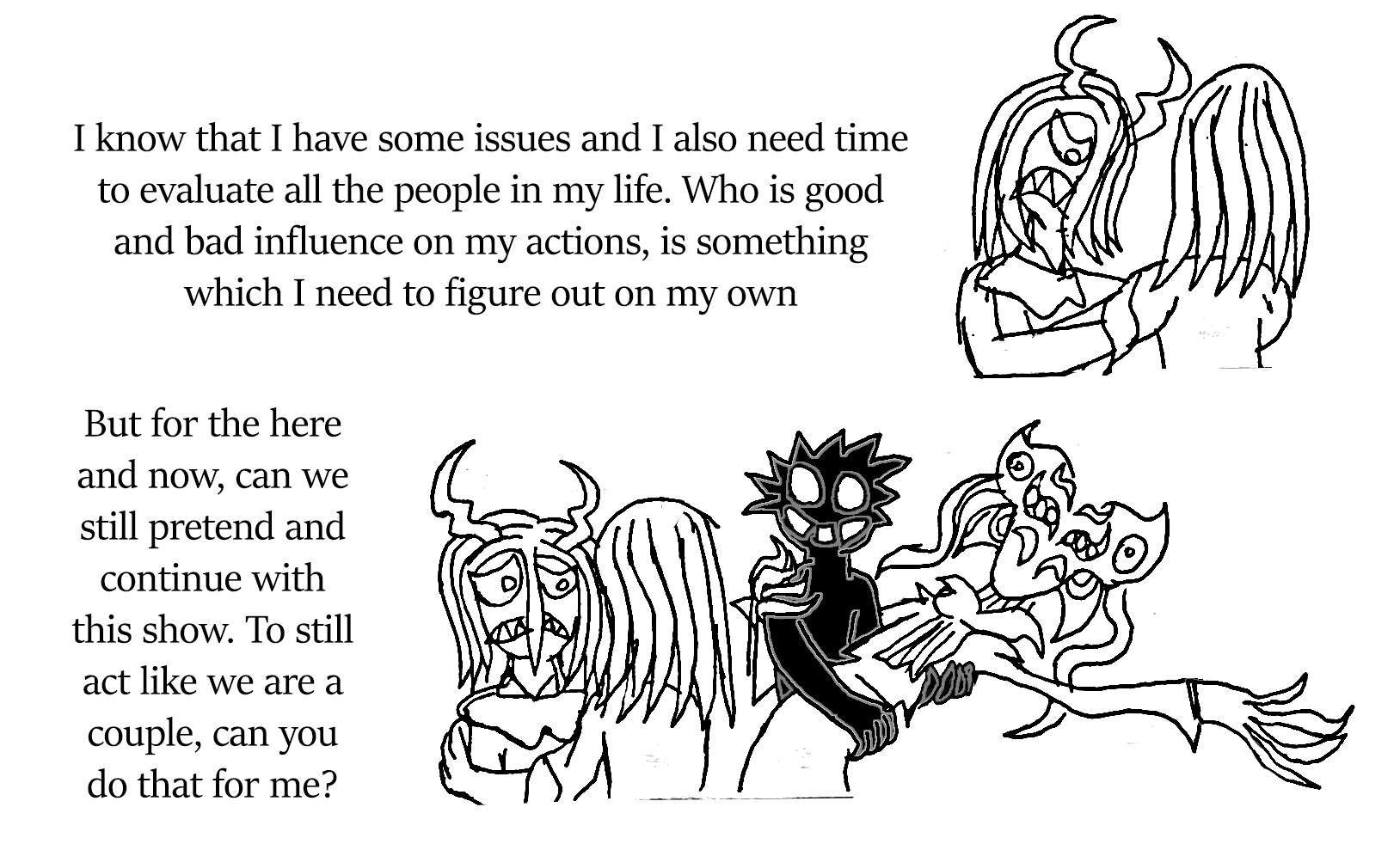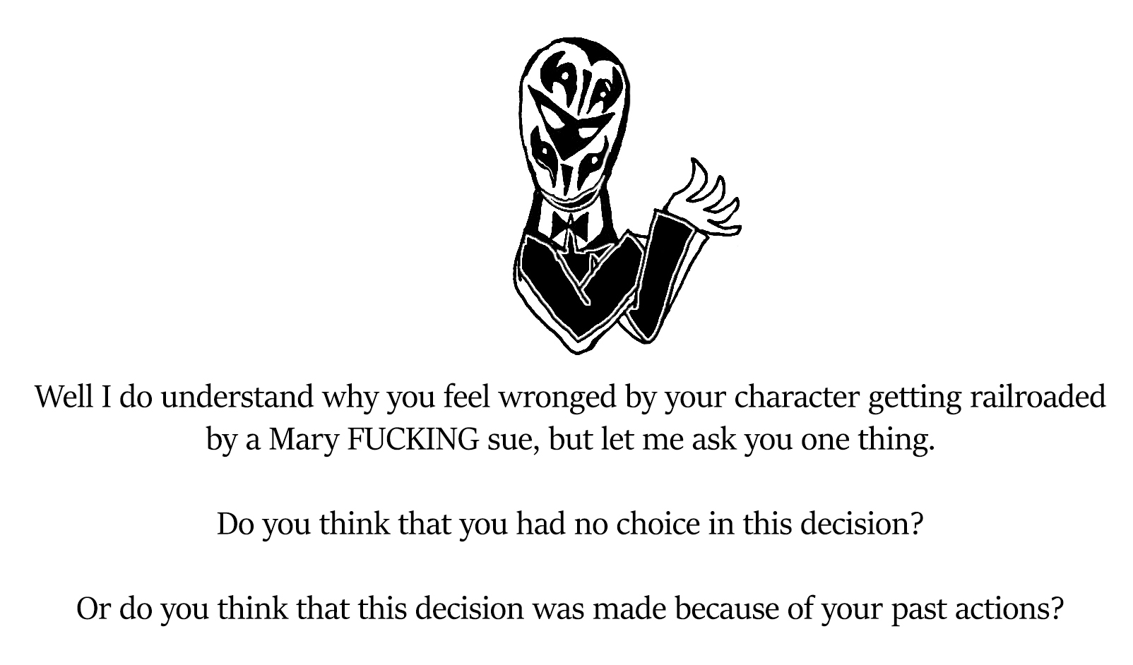 Continuing with the recap, we start with Ana's story. Something, or someone has hijacked her exit from the Astral plane and she see a dream of someone who has a dream of chopping down a tree, but then the tree retaliates and makes the lumberjack a part of itself. The lumberjack awakens and knows "they must protect her at any cost." Remember this "lumberjack" because they will be important later and cause a shit load of trouble for Scarred and Fortune. Speaking of our intrepid duo, the two of them after seeing the events of the side quests have a meeting with the real master of the black fog and the true leader of the Acolytes of the Ash Tree, the demon known as Andrew Goodwill. He makes it clear that the Ash Tree demon is basically his bitch and he uses him like a weapon to fuel his own dark designs, he also reveals that he wanted to punish Root for going against certain order as killing Absolution was not his wish, and that he was the one who granted Scarred and Fortune bodies to beat the shit out of Clara. Andrew then offers Scarred and Fortune a choice of who they would like to see die, for no other reason than his own amusement. However in defiance of him they chose none of them and instead pick someone entirely random (intending for Andrew to pick himself) as they don't want to hurt anyone. However the joke is on them because instead he picks Wildcat, the Curator attached to Ana. They quickly make a bargain for his life, but Andrew proposes a new idea, he takes over Ana's body to further punish Root. Both them promptly refuse, so in order to defuse the situation and save Wild Cat (who I will refer to as WC from here on) they all start to tell some really dirty jokes in order to save him, only highlighting how capricious Andrew Goodwill really is. Scarred comes in handy here as she tells one about a guy fucking a cow to death as well as "The Aristocrats Joke," often considered the dirtiest joke in existence (see here for what she said: https://www.youtube.com/watch?v=aGA0dIz9-Wk) The joke is so filthy that Andrew lets WC live. They all swap some jokes, and Andrew leaves in good humor and WC promises to do his best to help Ana. Andrew returns to Root and warns him to not get so high and mighty again.
