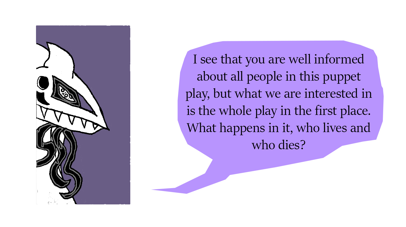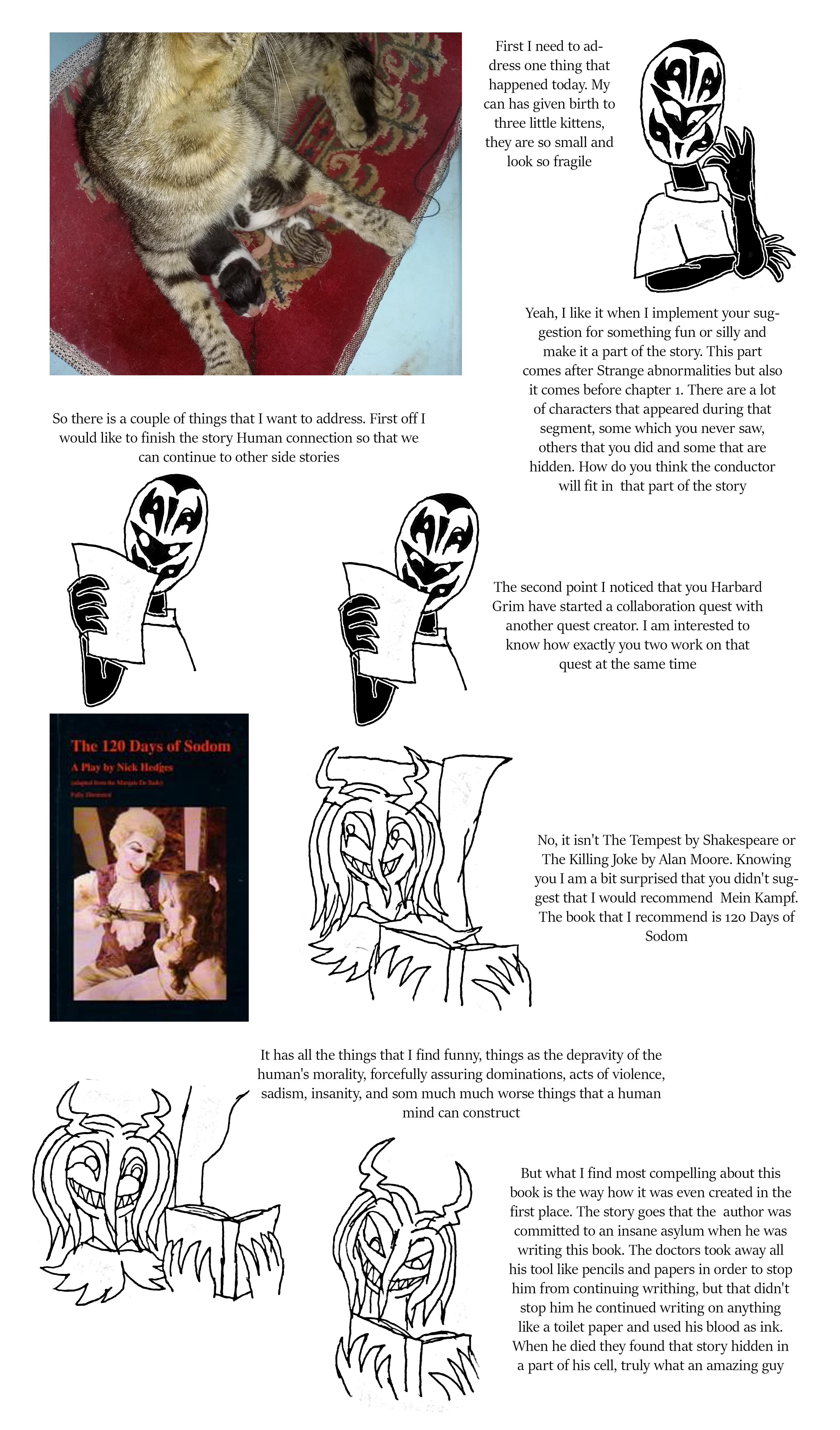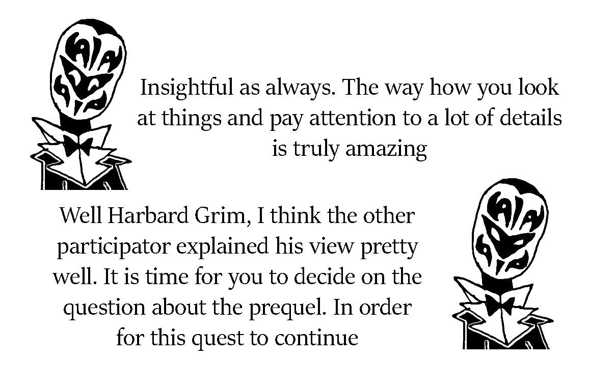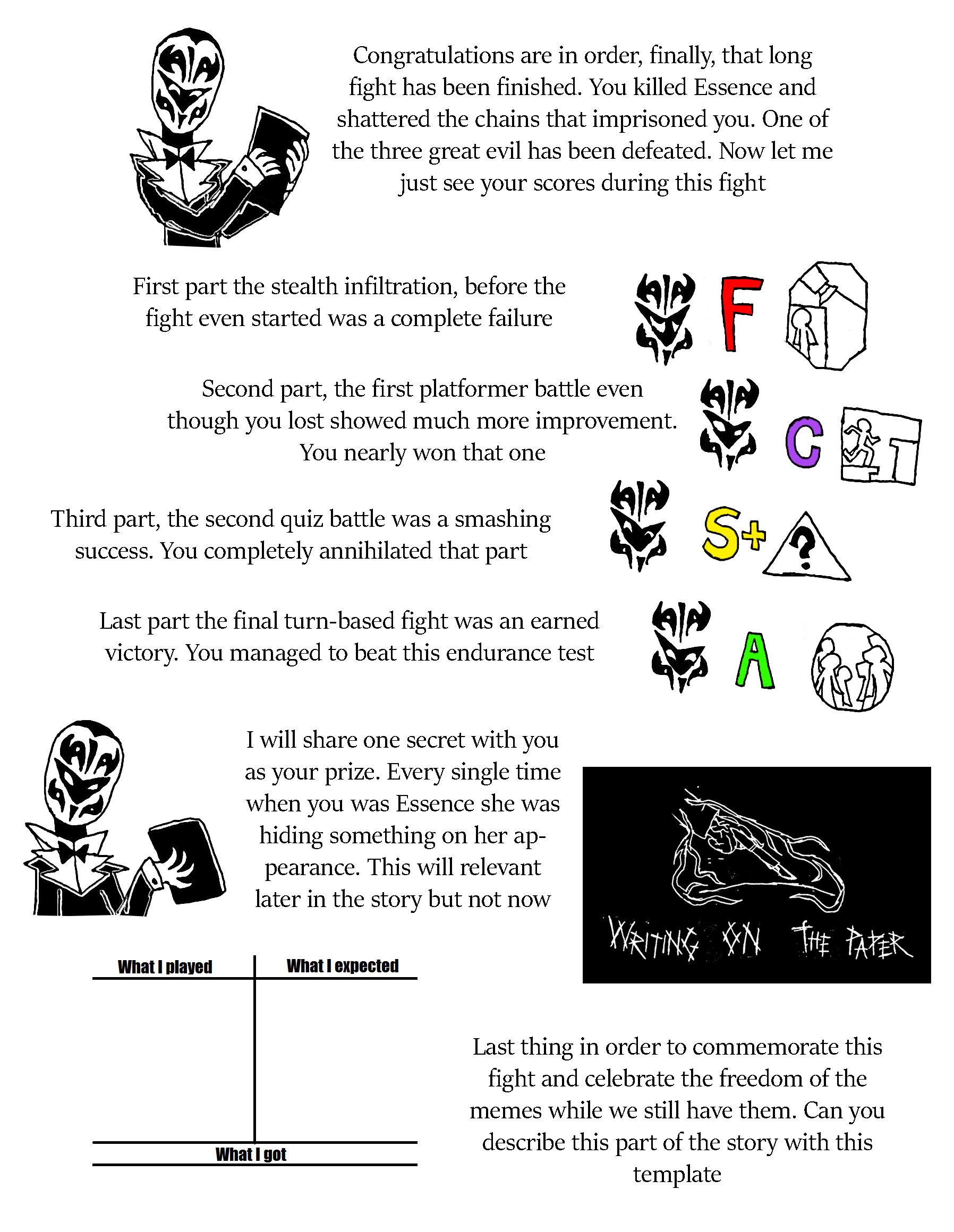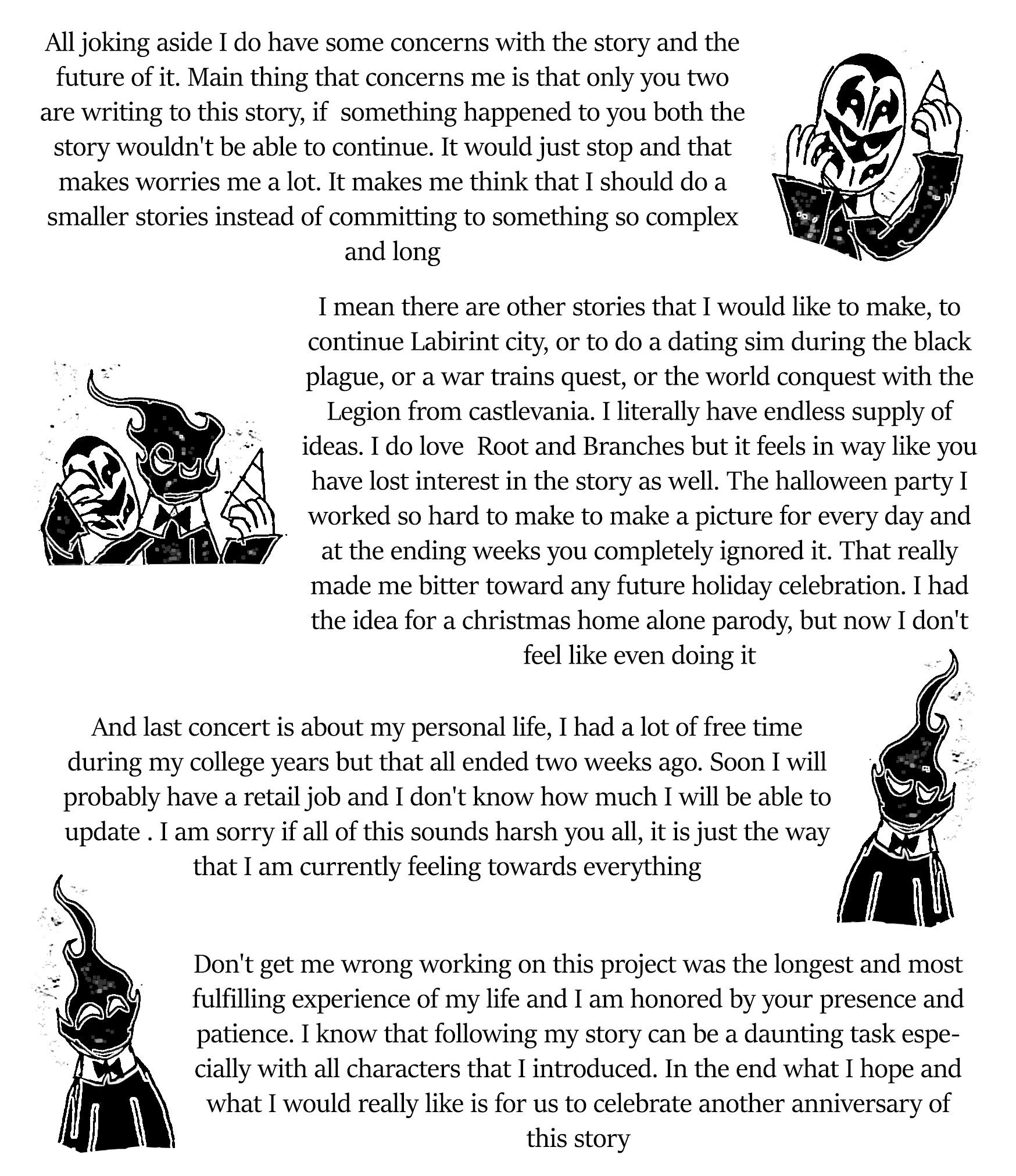 Continuing with the recap, we start with Ana's story. Something, or someone has hijacked her exit from the Astral plane and she see a dream of someone who has a dream of chopping down a tree, but then the tree retaliates and makes the lumberjack a part of itself. The lumberjack awakens and knows "they must protect her at any cost." Remember this "lumberjack" because they will be important later and cause a shit load of trouble for Scarred and Fortune. Speaking of our intrepid duo, the two of them after seeing the events of the side quests have a meeting with the real master of the black fog and the true leader of the Acolytes of the Ash Tree, the demon known as Andrew Goodwill. He makes it clear that the Ash Tree demon is basically his bitch and he uses him like a weapon to fuel his own dark designs, he also reveals that he wanted to punish Root for going against certain order as killing Absolution was not his wish, and that he was the one who granted Scarred and Fortune bodies to beat the shit out of Clara. Andrew then offers Scarred and Fortune a choice of who they would like to see die, for no other reason than his own amusement. However in defiance of him they chose none of them and instead pick someone entirely random (intending for Andrew to pick himself) as they don't want to hurt anyone. However the joke is on them because instead he picks Wildcat, the Curator attached to Ana. They quickly make a bargain for his life, but Andrew proposes a new idea, he takes over Ana's body to further punish Root. Both them promptly refuse, so in order to defuse the situation and save Wild Cat (who I will refer to as WC from here on) they all start to tell some really dirty jokes in order to save him, only highlighting how capricious Andrew Goodwill really is. Scarred comes in handy here as she tells one about a guy fucking a cow to death as well as "The Aristocrats Joke," often considered the dirtiest joke in existence (see here for what she said: https://www.youtube.com/watch?v=aGA0dIz9-Wk) The joke is so filthy that Andrew lets WC live. They all swap some jokes, and Andrew leaves in good humor and WC promises to do his best to help Ana. Andrew returns to Root and warns him to not get so high and mighty again.