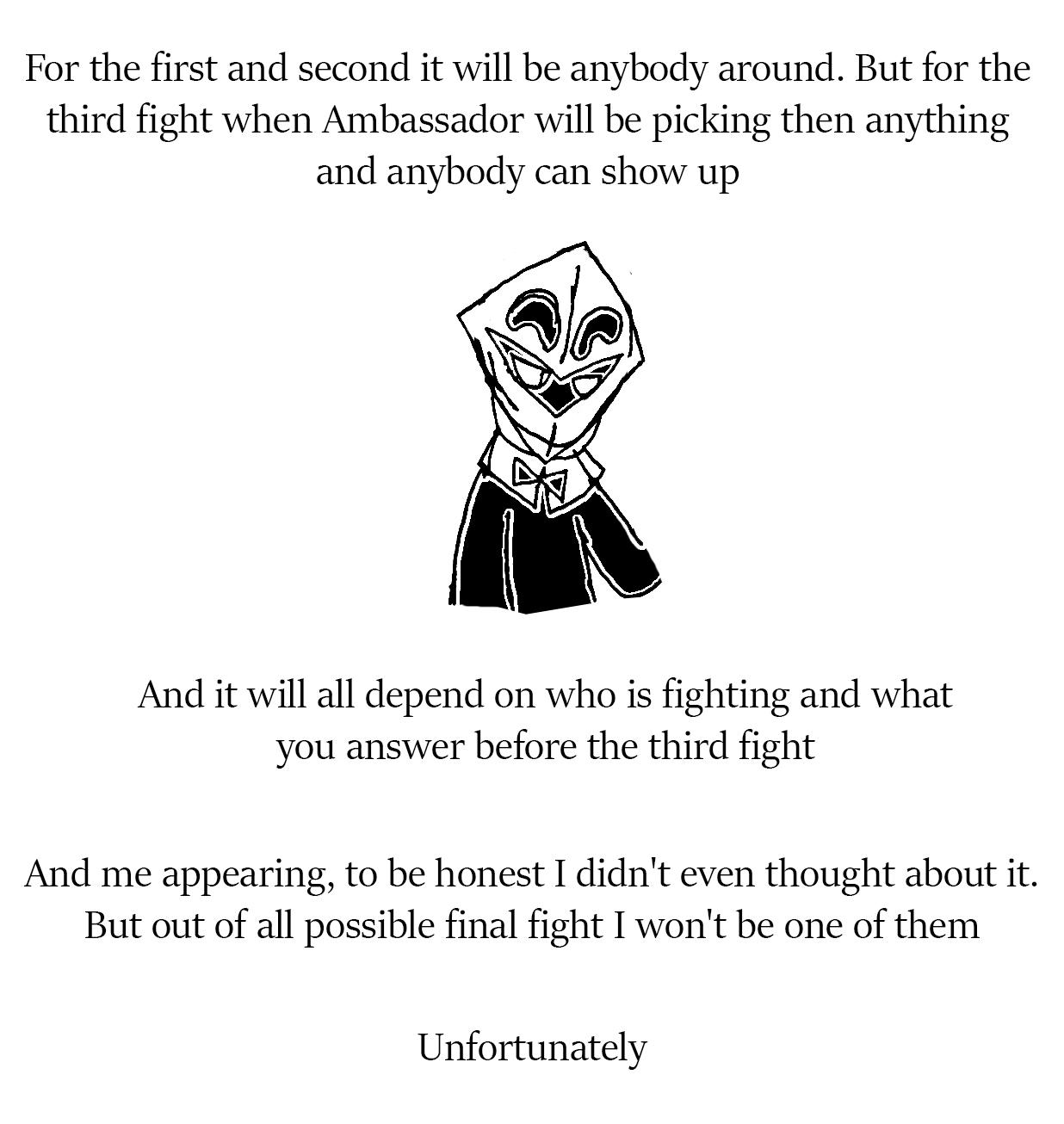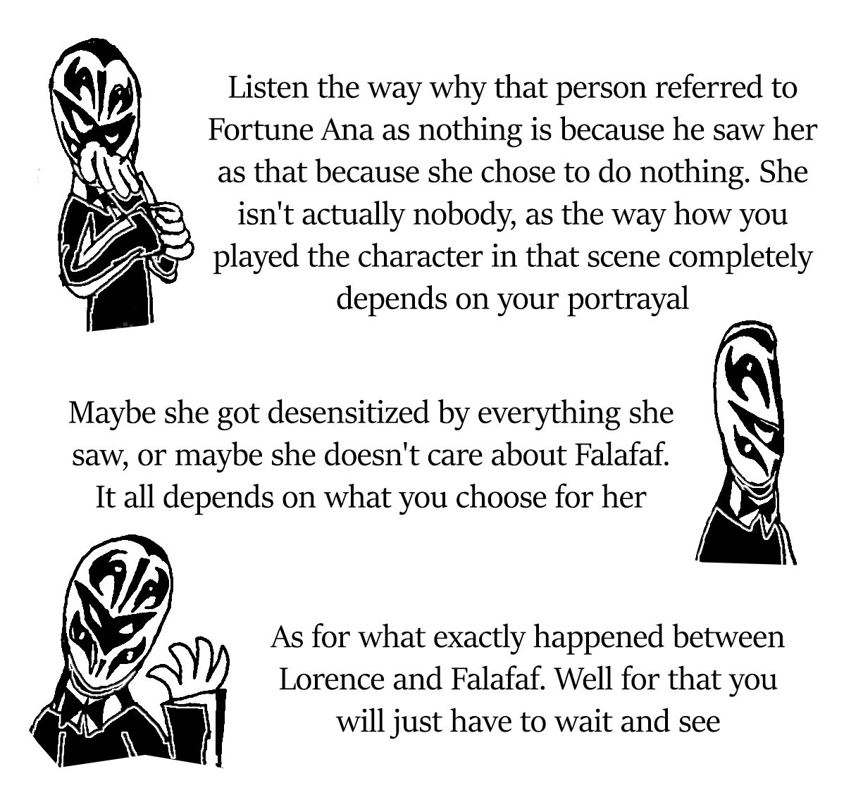 - And lastly the Ambassador, who as stated is a creepy individual but one better to have on your side than not. This is the one who Ana decides to chose.