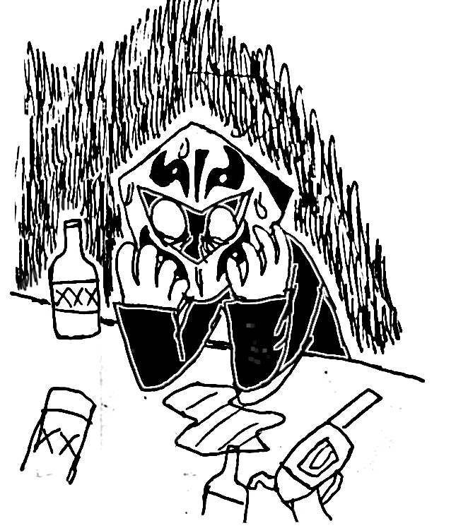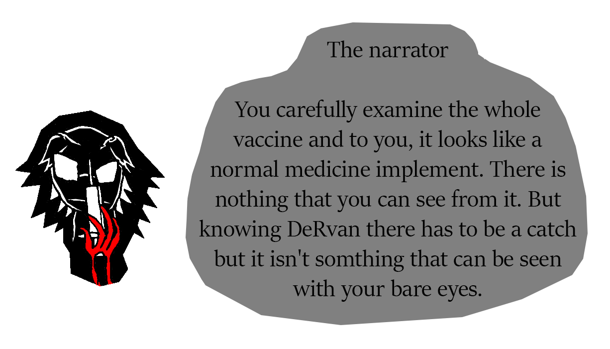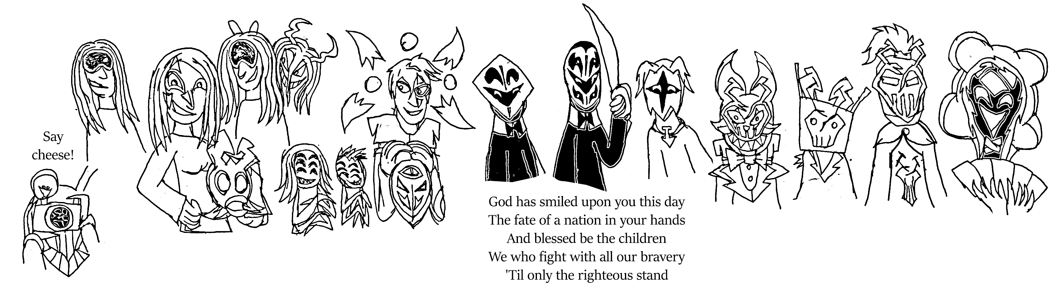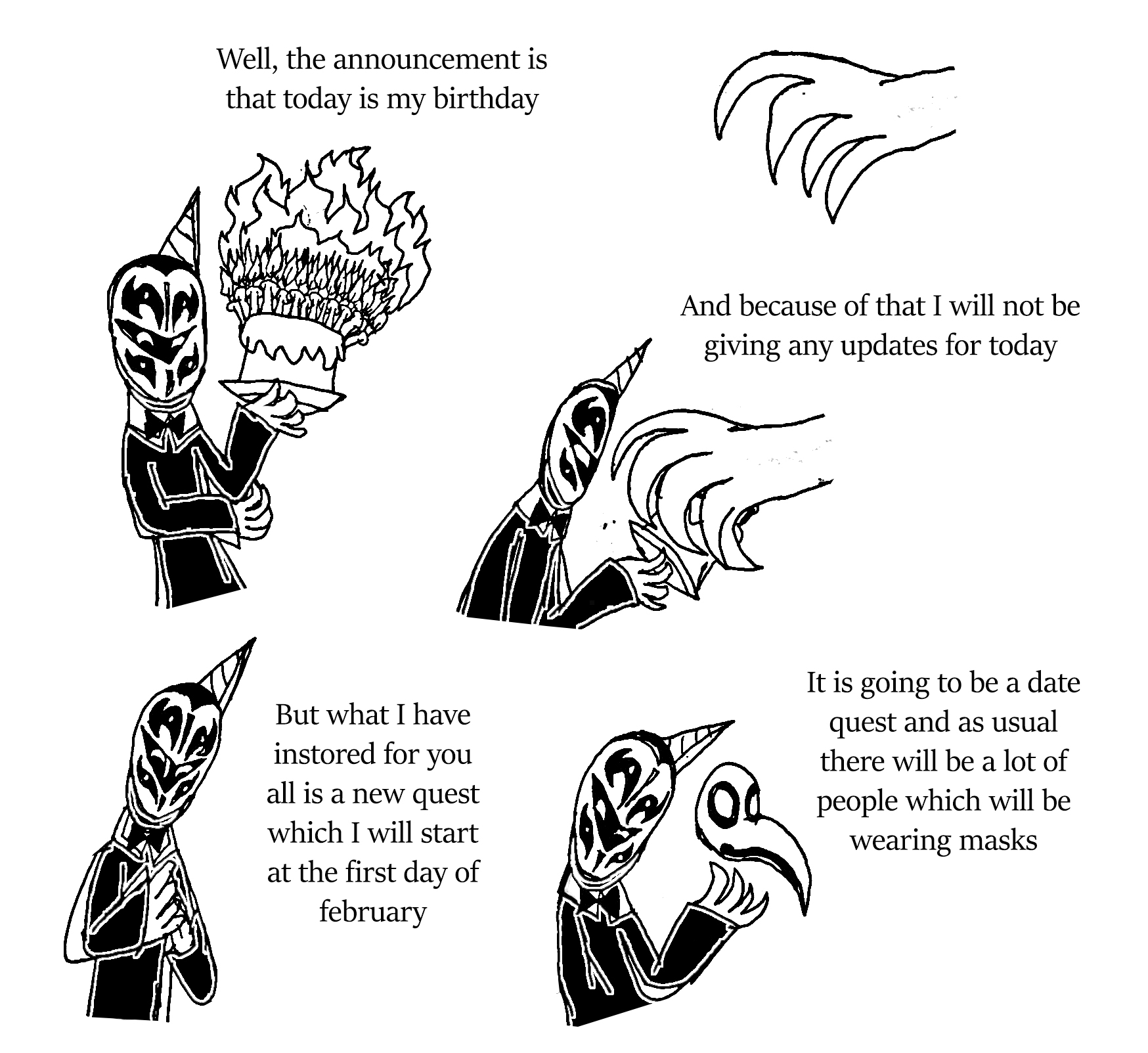 After the two of them leave WC requests using a small silver hand bell that he gave them when they first met. The bell opens up a small pocket dimension where a curator and shopkeeper named "One Horned Jack" runs a business selling good and information. One Horned Jack isn't his real name but it's what he goes by as a curator. Apparently on this pocket dimension Scarred and Fortune also have seeable forms, although they can't interact or touch anything, they are still able to talk and be heard by both the curators and Ana. Ana makes a brief radio call to Anatasia to test out the radio and they establish code names and she learns the cult is pulling corpses out on the streets and burning them. WC and Jack leave to talk business and Ana looks at what is for sale. Turns out Jack isn't just a shopkeeper but a man who will literally sell everything under the sun from items to secrets. Ana buys some healing items called "the needles of life," which can heal any injury no matter their severity. Jack and WC come back from talking business and as it turns out, owes a debt to Scarred and Fortune because they saved his daughter's life. Jack's daughter is Matilda who was on trial earlier and he gives them some information about who buys from his shop, mostly cult members needing medical supplies or even drugs. They negotiate the distribution of some needles of life to people who need them like Lester who as you remember will be stabbed later on and this may save his life. The shop also has a young blacksmith there who simply goes by "Blacky." . She also gives a new mask order for Blacky to fill out as the cult has already begun to recognize her by her fish mask, as well as gets a new weapon head for her hockey stick. Blacky turns it into a Svardstav, a swedish weapon that's a kind of long spear with a short sword on the end rather than just a regular spear head. Black leaves to complete the weapon order after it has been placed.