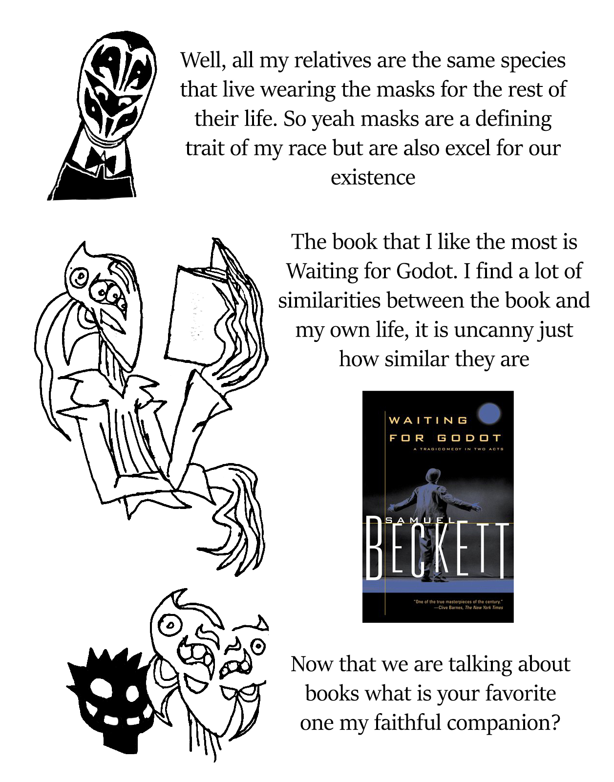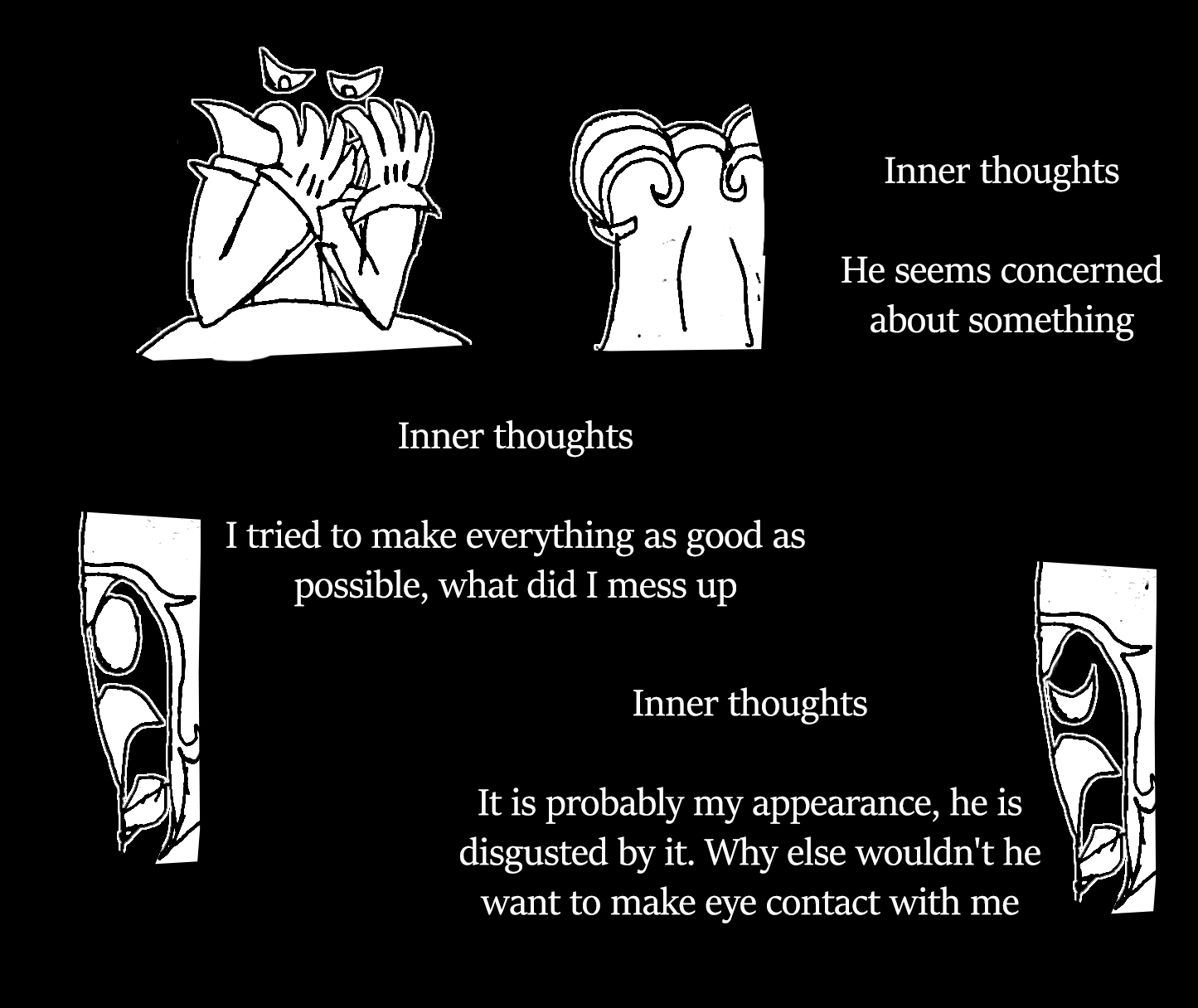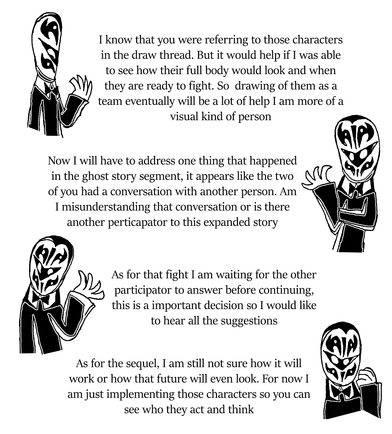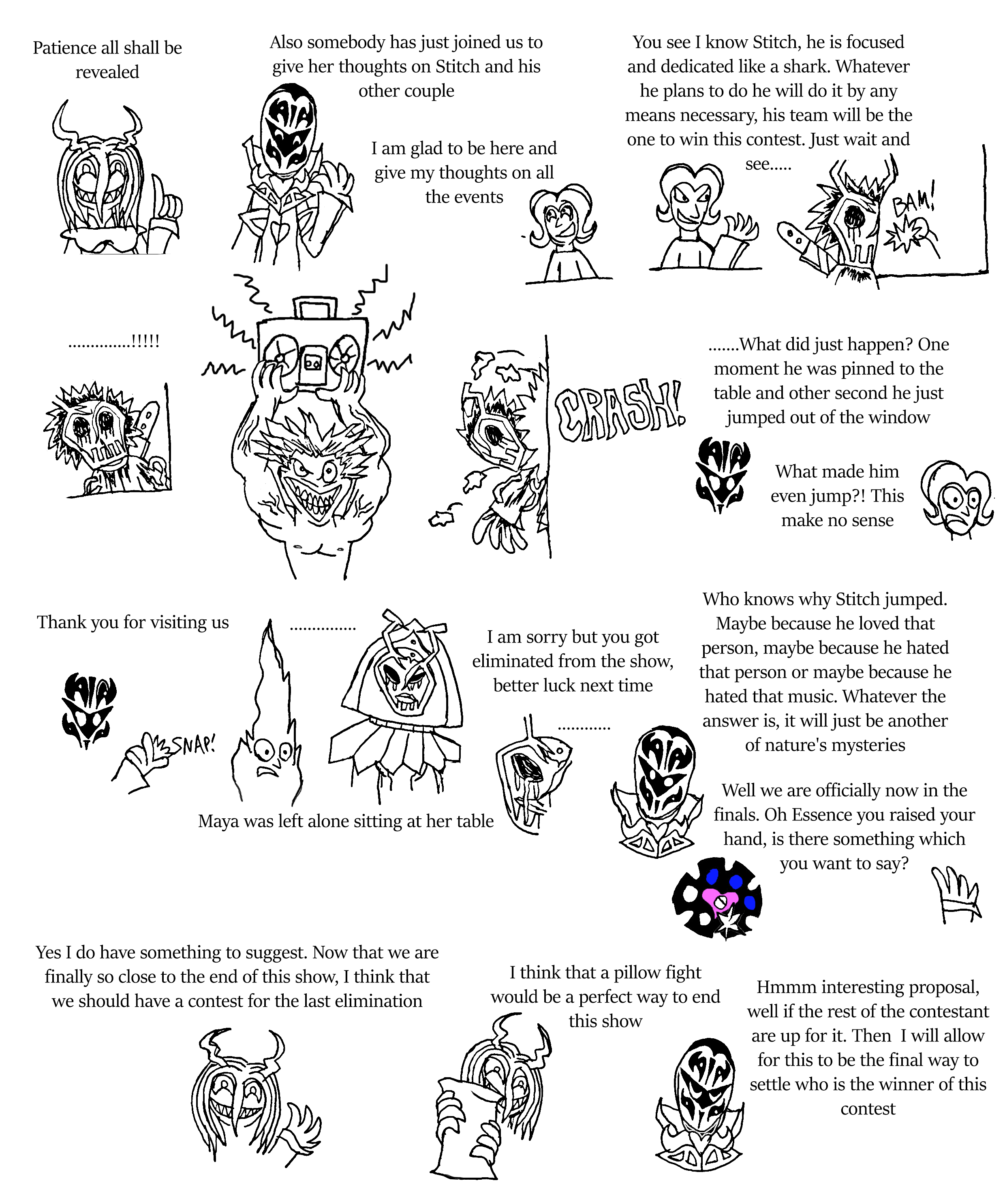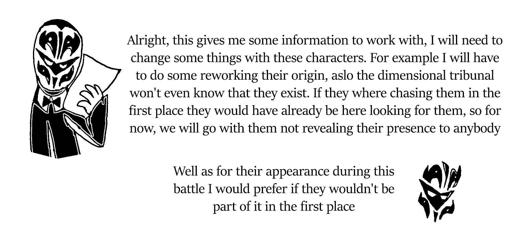 They place the call to the Ambassador who agrees to be her bodyguard after some very odd words and questions. He agrees to be her bodyguard as he was once a mortal and wants to gain more power, and even take over the Acolytes of Ash. It's made clear he sees her as something of a means to an end but at the same time she also agrees and the two form a rather tense alliance. After some very choice words the two end the call only for it to be revealed that Root's bodyguard, a silent monster named Stitch, is standing behind Ana, still acting on his previous order to find her and kill her. Stitch is a silent killer and a frankenstein's monster of an abomination. Ana freaks out but Blacky, gods bless his heart tells her to ring the bell again which will send her out of the pocket dimension. She does so just in time before Stitch has a chance to put his knife (which he keeps lodged in his neck) through her heart. However, Stitch is furious at Black for telling them how to escape. Stitch begins to break all of the bones in Blacky's hand except for Dreamwalker who is able to disguise himself uses his power to turn into Root, and he gives the order to not kill him. Stitch obeys but it doesn't mean "don't hurt him," and he breaks both the arms of Blacky and rips one of them off before putting a smile on his mask for Ana as she leaves watching all of this in horror.