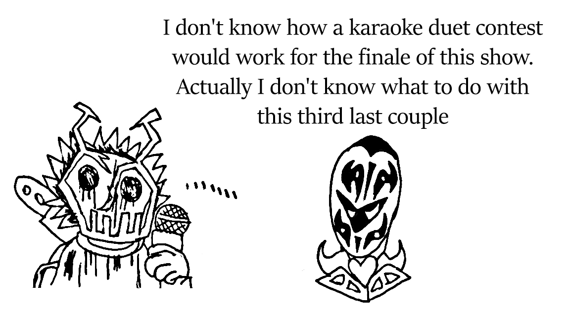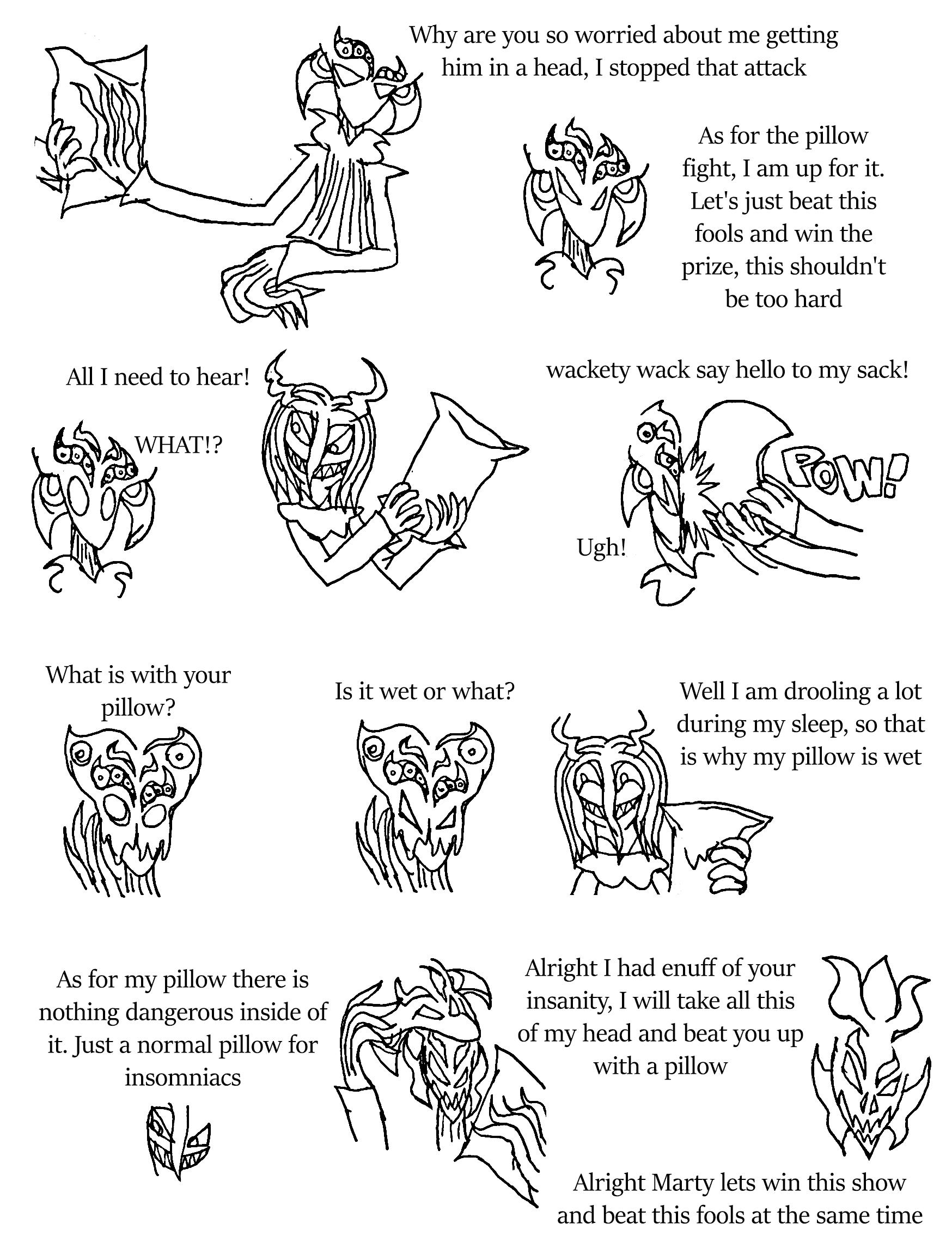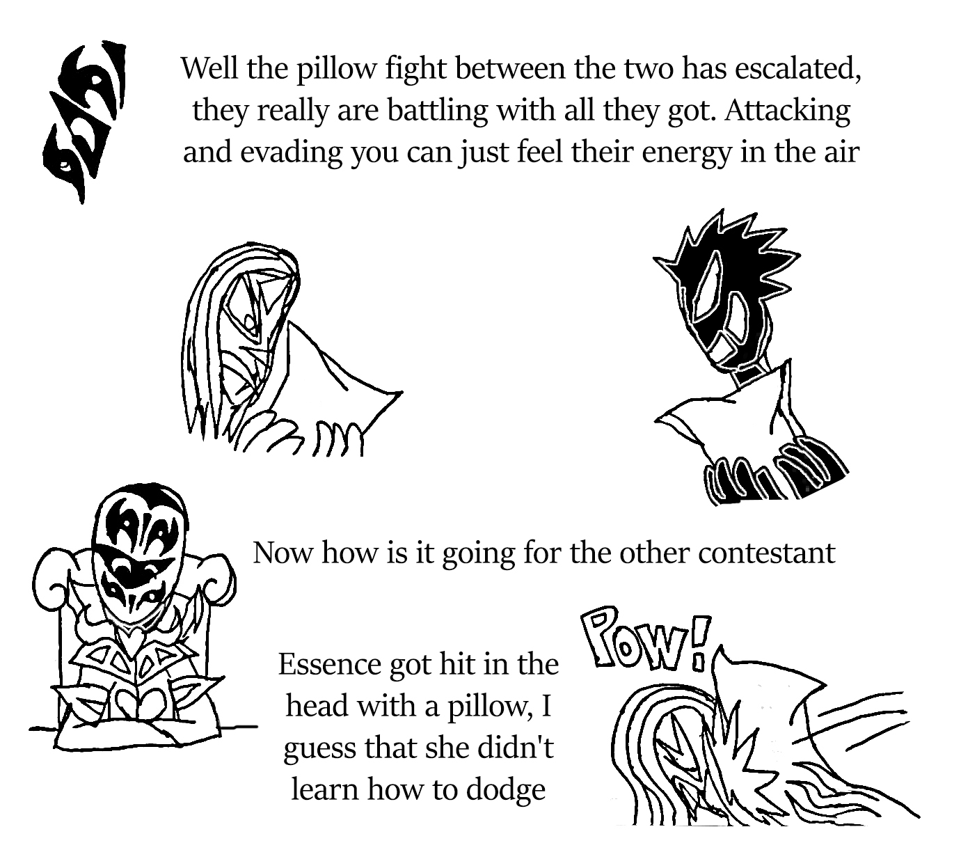 the second match is Godfrey vs, Fire of Hate (whom I will shorten to FoH from here on), the knight vs the fire breathing dragon. The ambassador gives Godfrey a ring that allows Scarred and Fortune to help/talk with Godfrey and the fight begins. FoH unleashes a blast from her flamethrower while Godfrey circles around using keeping his shield up against her fire. The shield won't last for long against that heat so he gets underneath and is able to cut the fuel line of the flame thrower. FoH isn't done though as she throws two different fire bombs into the air. Dreamwalker attempts to help but the powers that be determine him to be overpowered to stay with Ana with powers like being able to stop brain function and he is whisked away elsewhere to deal with some other shenanigans. We'll get back to him later but for now we continue the duel. Godfrey's cloak is actually fire proof and he wraps in around himself shielding himself from the falling napalm. However he can't get in close to finish the job as the falling fire has lit up parts of the field and she's retreated behind them. Godfrey is fireproof from above but otherwise walking through fire is still too tricky. Fire of Hate however pulls two firepokers out and tells Godfrey to get her. Instead he pulls a move straight out of lord of the rings using his shield like a surfboard going across the flames but FoH was ready and uses her fire pokers to stick Godfrey in the head and rip of his chest plate. Turns out Godfrey is an immortal and can't die from a blow to the head like that and he forces his way up even using his cape to smother more of the flames and catch a fire axe she swings at him. Cheered on by Scarred Godfrey headbuts FoH and she goes down and he points his sword at her. FoH won't accept defeat on anyones terms but her own and attempts to light herself on fire. Only through Godfrey literally punching her lights out does she stop. Godfrey takes the win and the score is one for one on both sides.