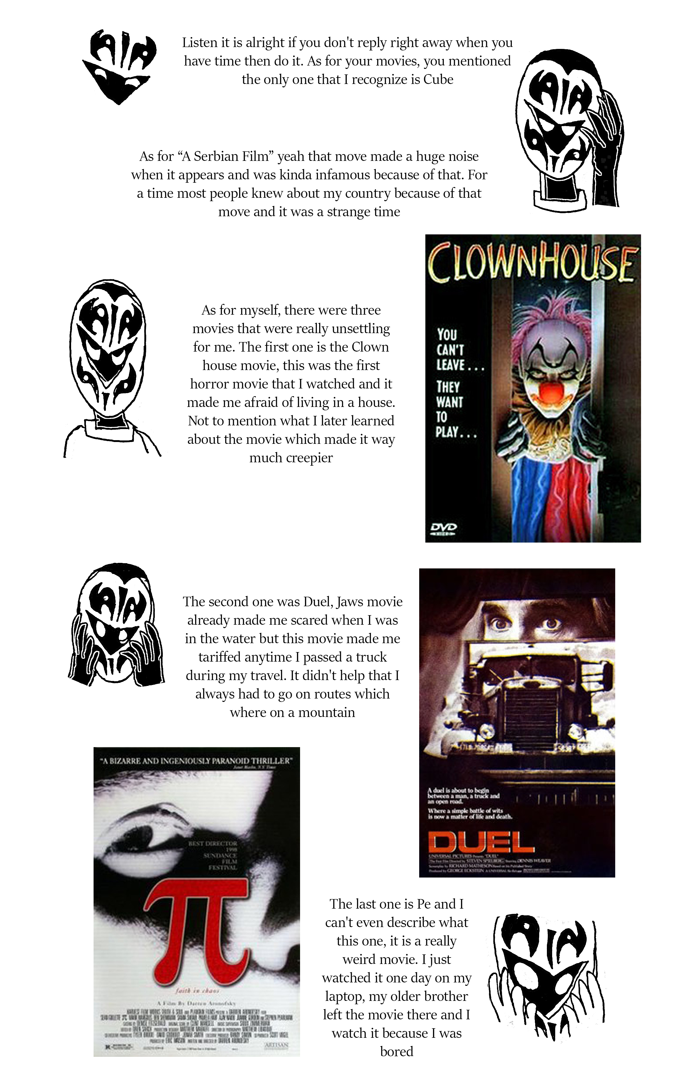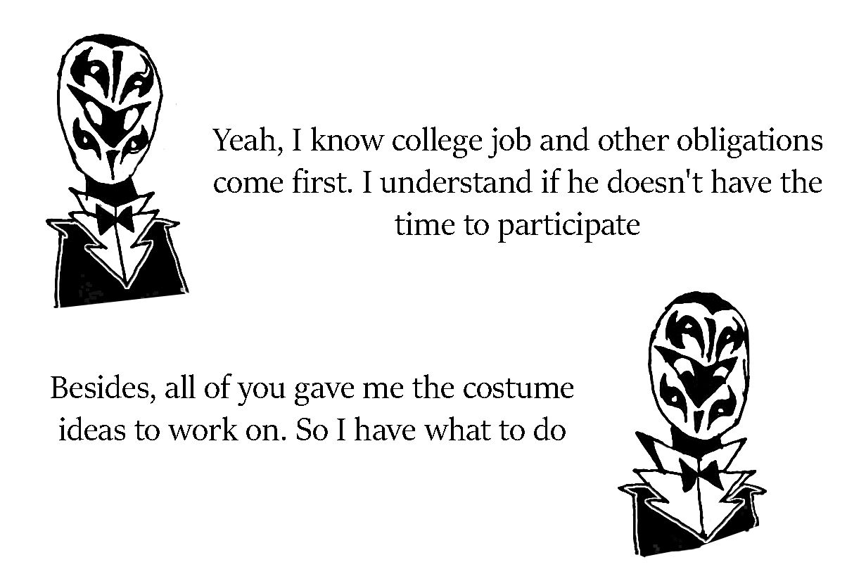 - Crimson Cinnamon "Bleeding" Jimmy, "a psychopath" who dressed like Chucky the killer doll and is into tinkering and creating various gadgets and who keeps various weapons and tools inside their body like fucked up magic bag trick. He apparently works for cash.