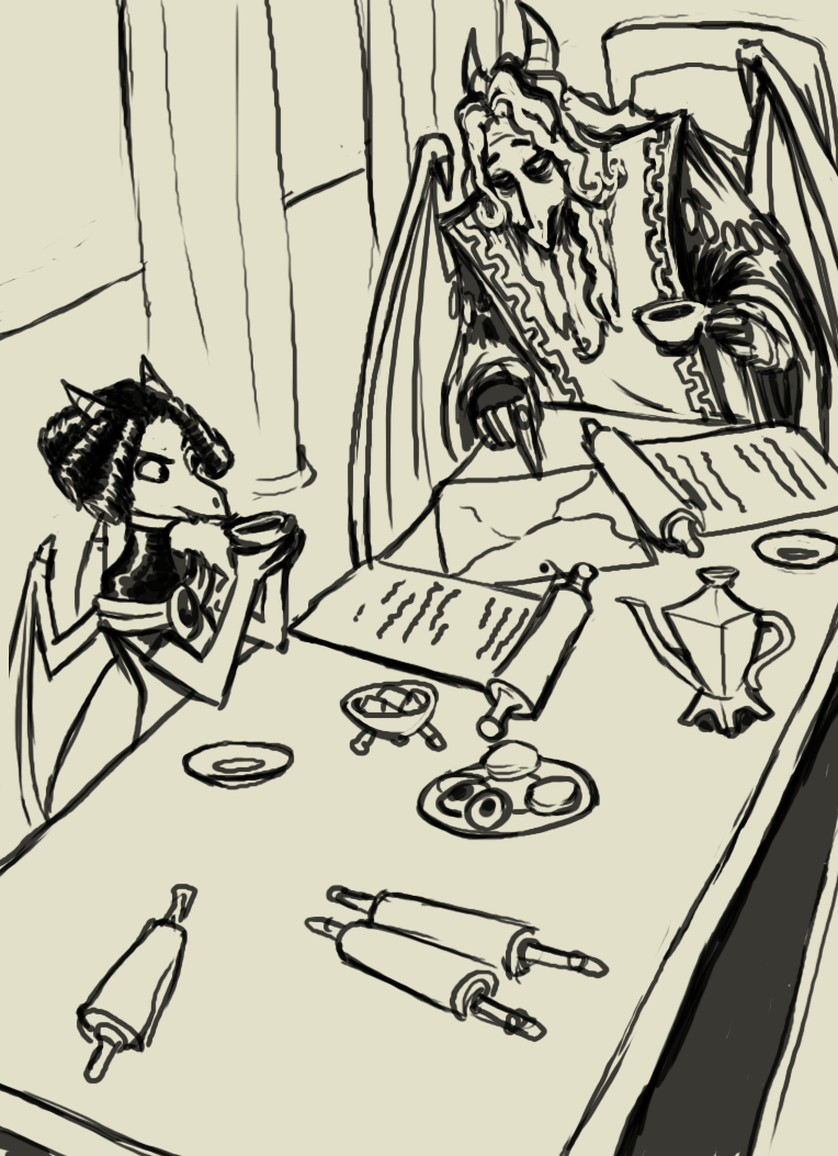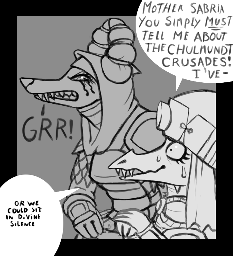 Silken Vale was a complex quest, and had the misfortune of its mechanics mostly being established in info blocks; it didn't have much of a mechanical intro or tutorial and the interaction point between the suggesters and the audience was one in which it was entirely possible for the characters to lose patience with and outright ignore the suggesters. Still, people seemed to be interested enough in the quest and the setting on its own merit to go through the info blocks, so the lack of a tutorial wasn't really so much of a problem. My ability to speculate on its failure is limited but if I had to make some untrustworthy guesses I would say the method of "control" was quite restrictive (only able to talk to one character at a time, possibility that said character wouldn't listen, possibility other characters wouldn't listen to that character on top of that) and didn't let the suggestors feel that they had much positive influence. Also the intro ended up feeling a little dull. With the top-down perspective and all the complex mechanics the quest seemed built for tactical combat but we started off just wandering around picking up all our characters and talking, which IS the natural way for a detective/investigation quest to start, don't get me wrong, but for that it needed a different presentation for those parts of the quest. It should have had shots of the environment and of the characters' body language and other atmospheric stuff to sell the mystery fantasy, the audience needed to feel the sense and desire to explore the setting and the characters and uncover the secrets that had been promised by the quest's story. The "mood" wasn't there. The top-down battlemap perspective made things seem simple and straightforward and clearly laid out and that didn't fit the premise of a fantasy murder mystery at all, really. It wasn't unsalvageable, though.