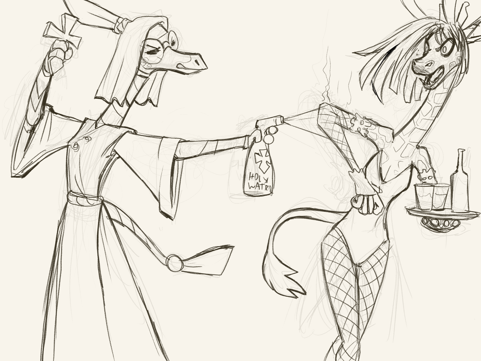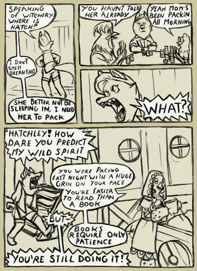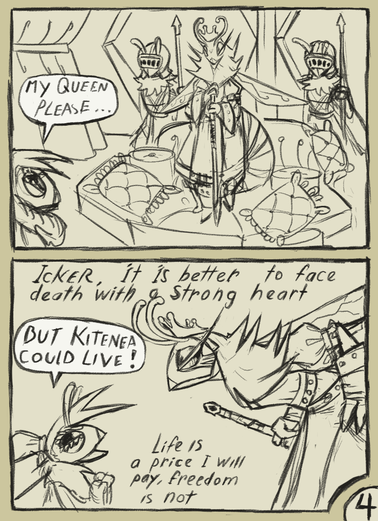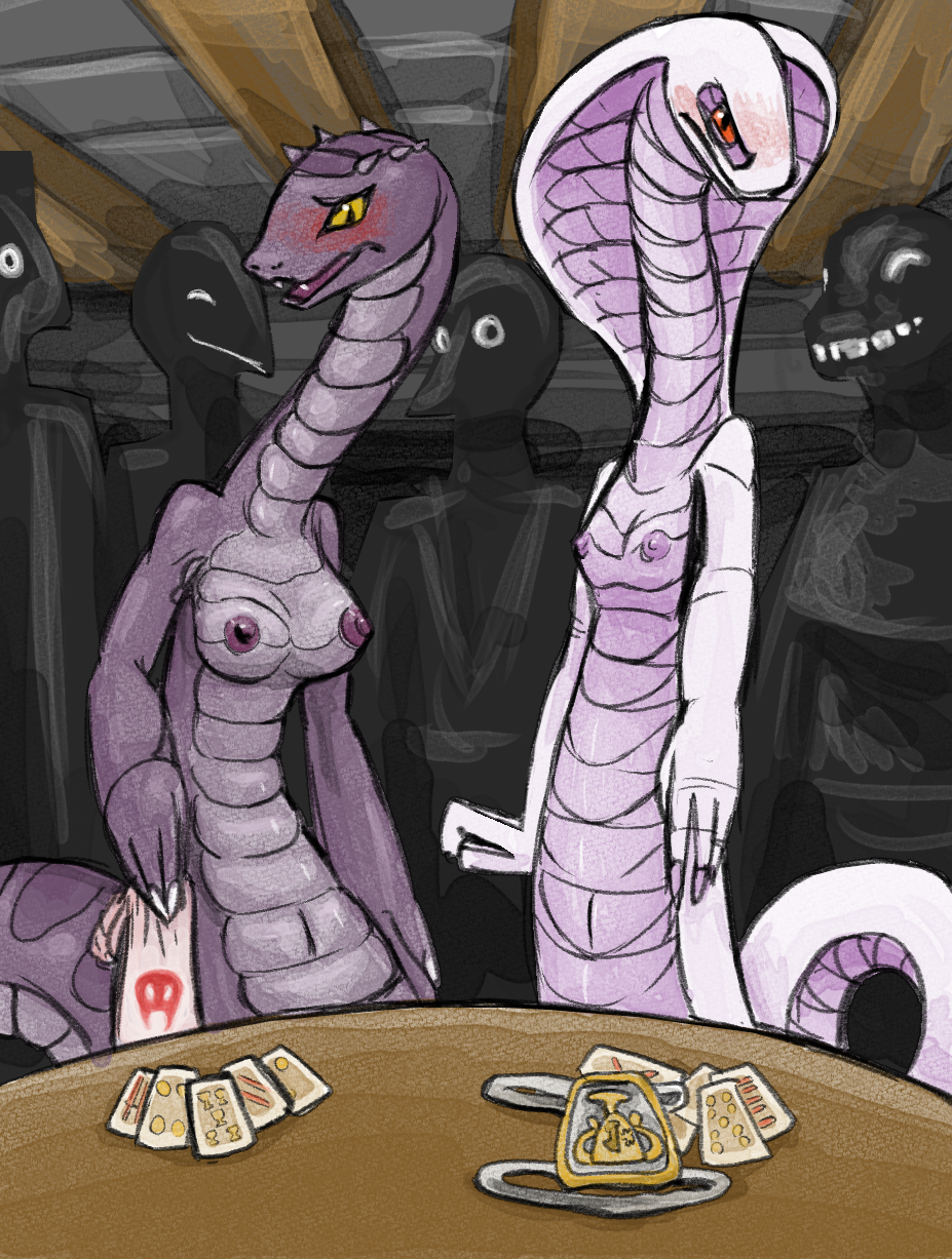 King of Pentacles I think has a better chance. It leans closest to being a simple quest by the above categories but pushes a bit beyond that by the quantity of the characters to control and the "stats" and abilities being hidden. If it were to be theoretically redone I would start with a simpler and faster intro encounter to give a chance for the mechanics to be explored/explained more quickly (for example, instead of facing the heroes right away maybe we start with a scene of only one or two of the tax collectors guarding their stuff in a town at night while the others are sleeping, and facing off against one or two bandits; or perhaps one or two tax collectors scouting ahead of the group along the road and fighting just one of the heroes). You could also have put in some sort of "tutorial narrator" who could comment on the fight while it was happening, like maybe the queen herself watching by magic, or some nearby wanderer, or perhaps a veteran but invalid tax collector character who can only sit and shout orders at the others, or something like that. I would also (and this could still be done) just put up a straight gamey "UI" or a stat screen shown at the start of each round, where we can see the characters' health and morale as bars as well as their condition and maybe a little list of their special qualities and their "level" to show how powerful they are.