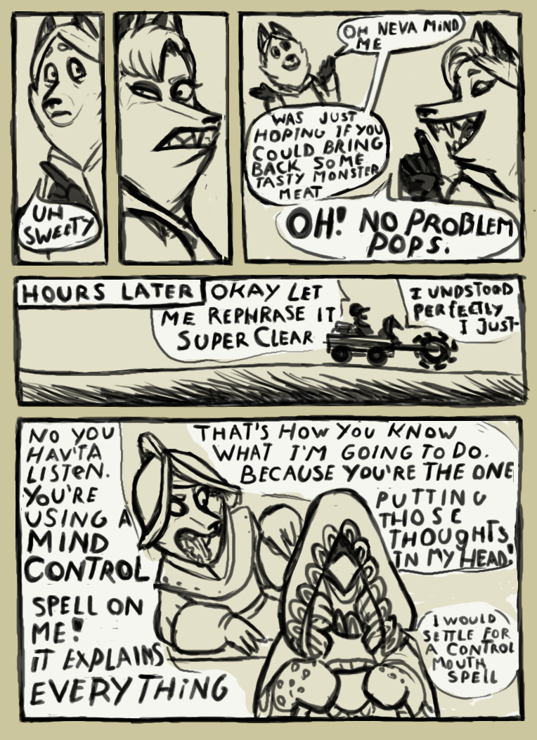 Complex quests, finally, have in-depth systems for abilities and actions that the readers will not be expected to be familiar with intuitively, such as complicated magic powers or characters with alien natures. In order not to front-load a big boring infodump, these quests need some sort of intro sequence or tutorial where the things the audience needs to know are revealed a few pieces at a time. It will also help a great deal to have some sort of tutorial instructor character who can interact with the audience to clarify details and answer questions. This can be tricky if the audience will keep interacting with the people they are revealing their ignorance to and will need to be taken as some sort of authority afterwards, so there needs to be some reason the characters keep listening to them: often, it's just that the characters are stuck with the audience and have no choice but to listen, which is the case in most "the suggestions are the character's own thoughts" setups, but there are other ways to achieve this.