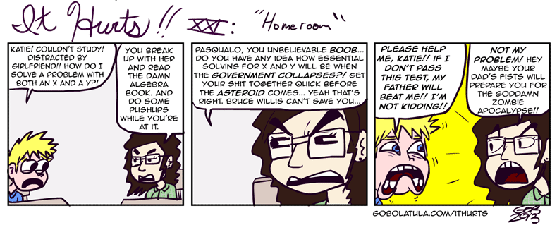 It's a spinoff to a dumb webcomic I like called It Hurts!! Read it here and get to comic 100 for relevant context.