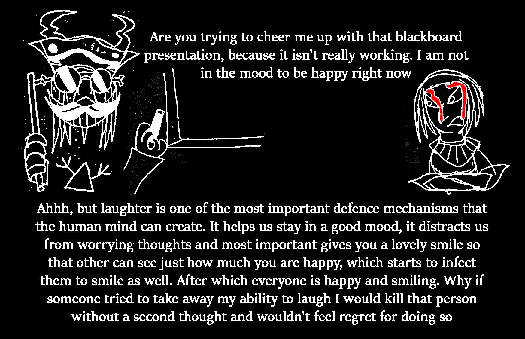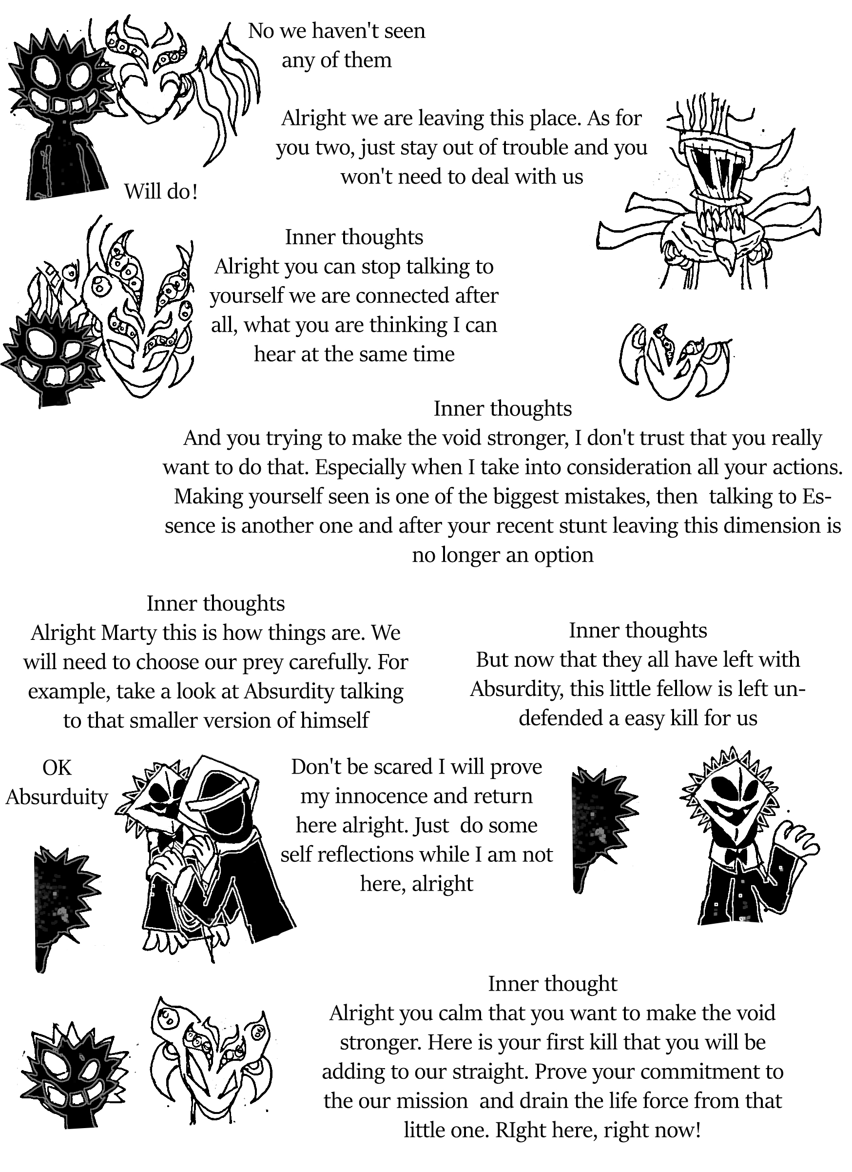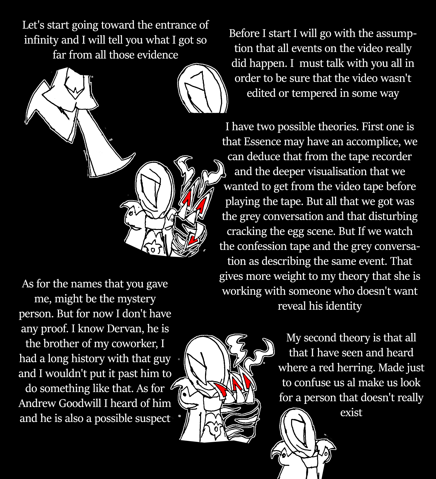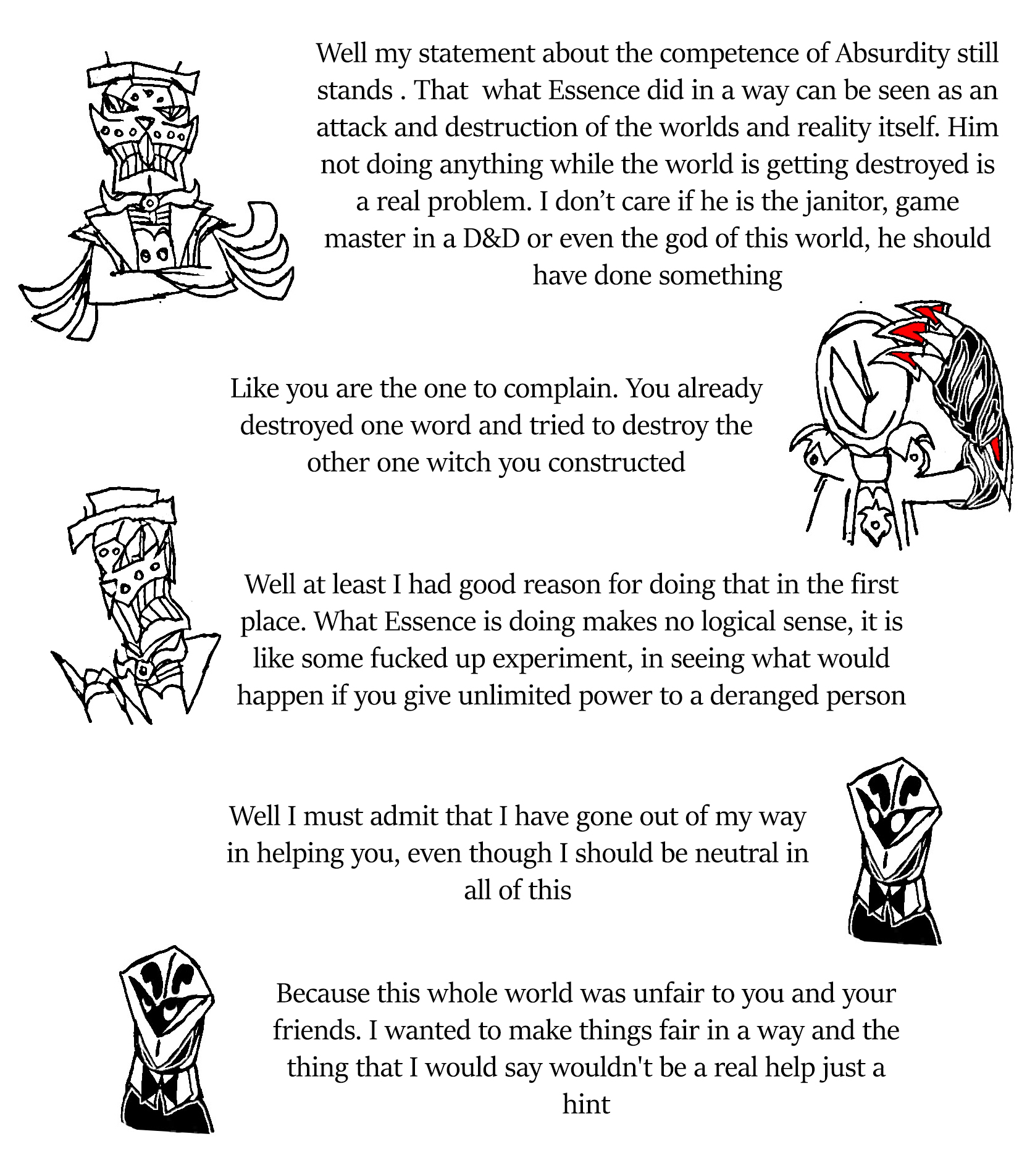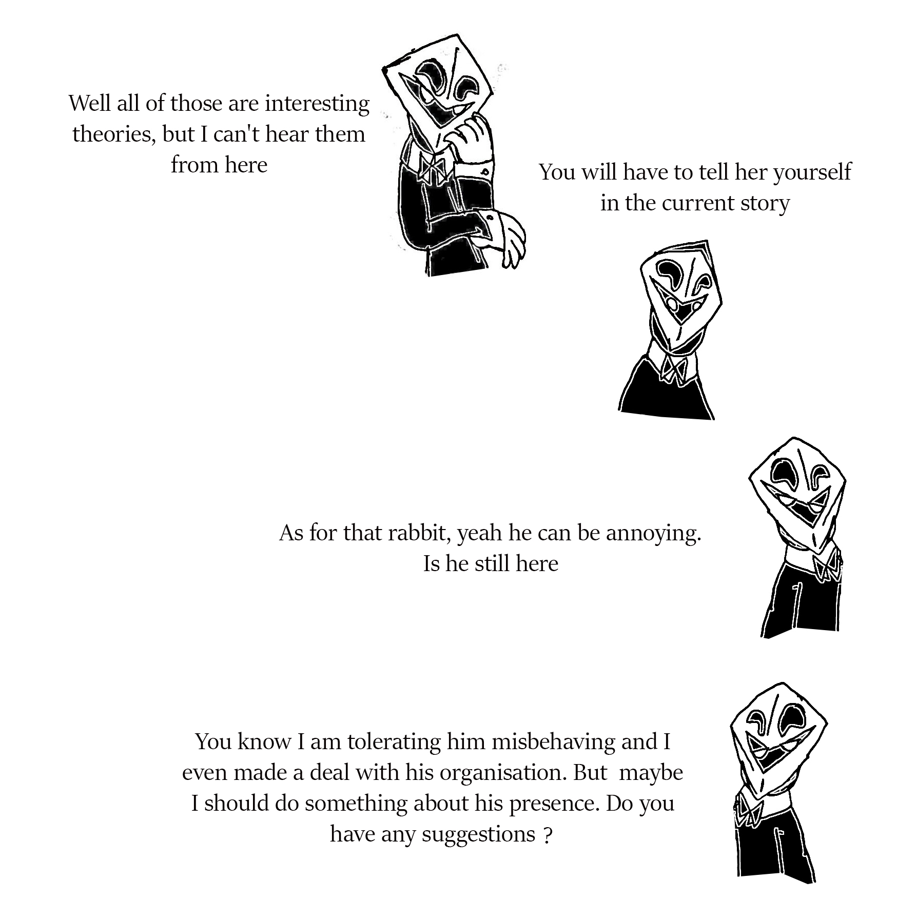 Sixth: you might not like what I might say, but I think Falafaf is on her way to death soon. remember the paper with the horns and Essence crossed off one of them after future Falafaf died? I do not think that means only future Falafaf is dead, I think that applies to present Falafaf as well, and she is marked for death. That said, to keep yourself from getting clouded by deep emotions, I don't want you to get too attached to her anymore. I'm not saying don't talk to her, just be prepared for that outcome.