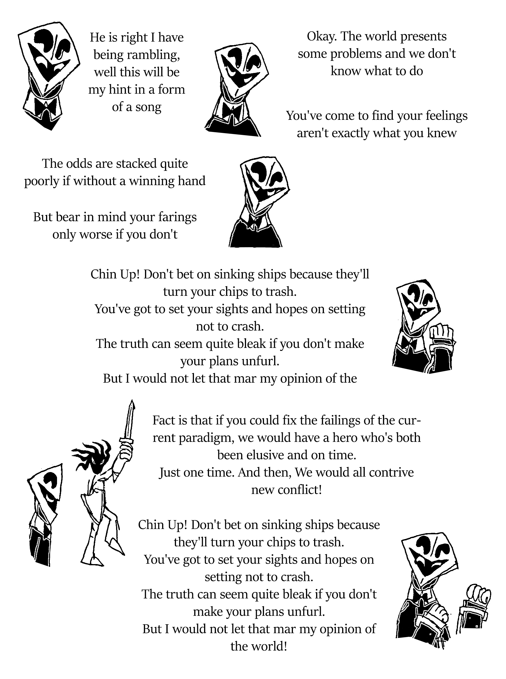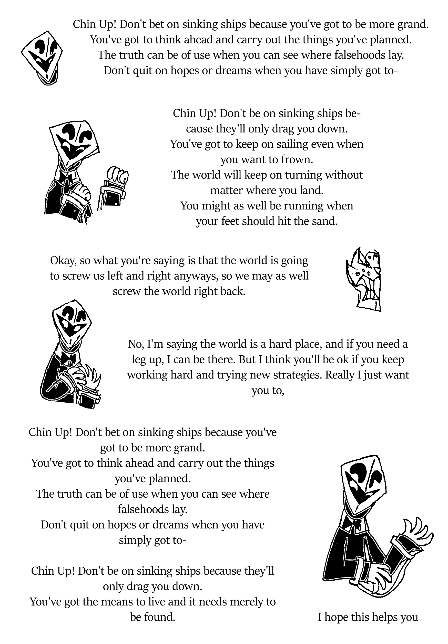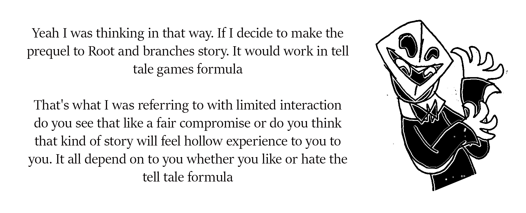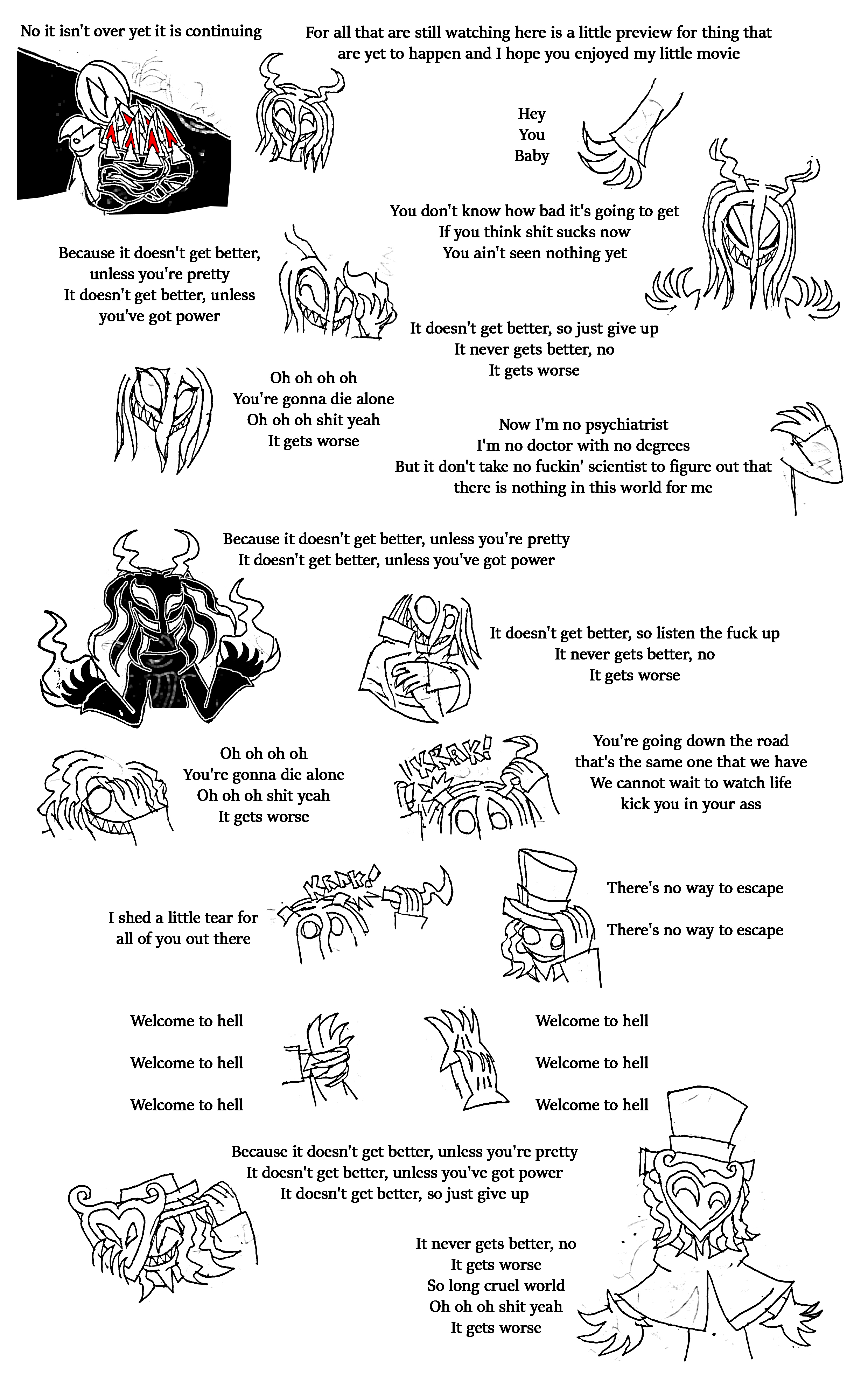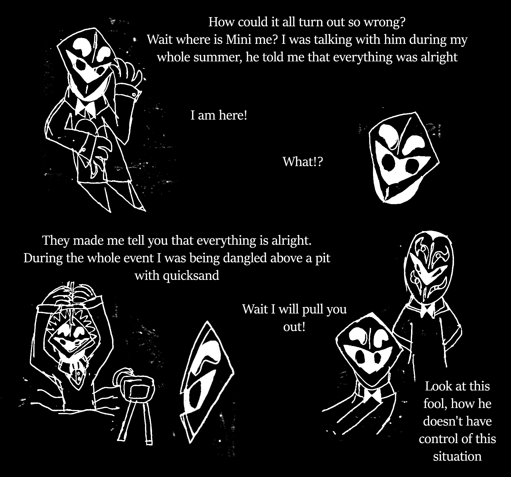Sixth: you might not like what I might say, but I think Falafaf is on her way to death soon. remember the paper with the horns and Essence crossed off one of them after future Falafaf died? I do not think that means only future Falafaf is dead, I think that applies to present Falafaf as well, and she is marked for death. That said, to keep yourself from getting clouded by deep emotions, I don't want you to get too attached to her anymore. I'm not saying don't talk to her, just be prepared for that outcome.