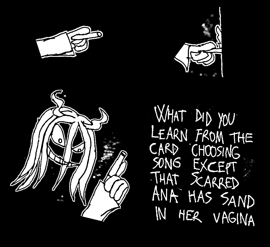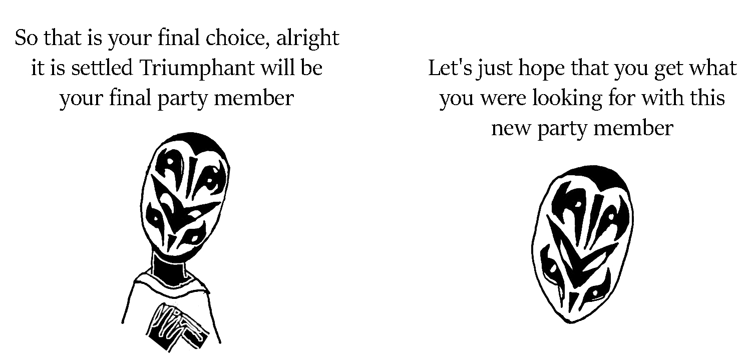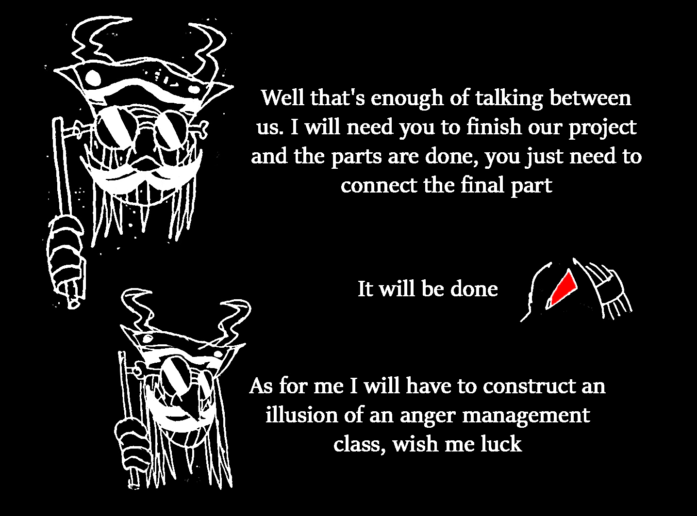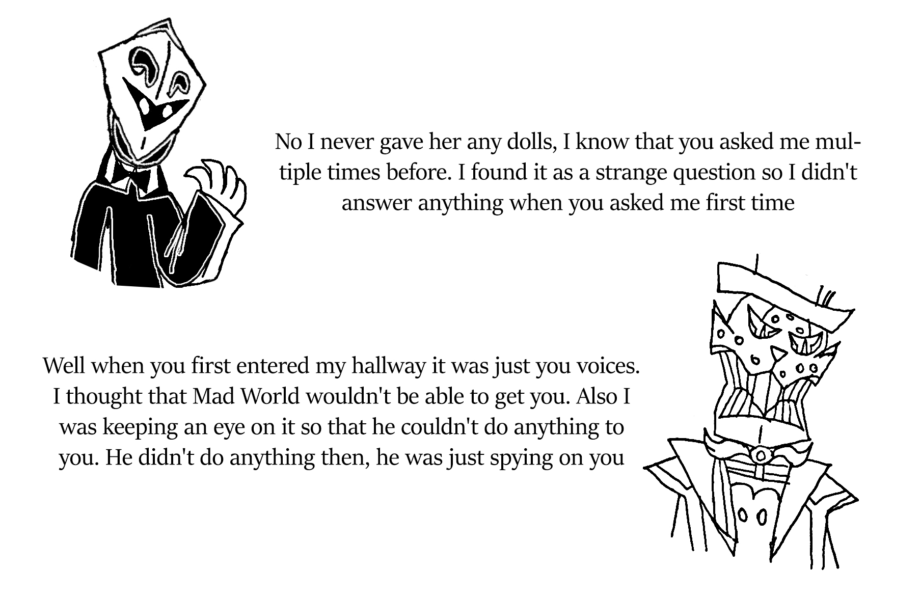 Fourth: I want to know if Ana truly wants me to still help her guide her. During the time we were sent to the future, I noticed that Ana did everything she could to find Scarred Ana's totem and even try to repair it to have Scarred talk to her again, but... I don't know if she even bothered to look for mine. Also, I noticed that when Future Ana tripped and fell, her left eye popped out... I use my left eye when I use my fortune telling ability. She may have at one point removed it herself because it reminded her too much of me. After we returned to the present, she refused to hear my story I was about to tell, she ignored my request to read Robbit's note, and she took Scarred Ana's path of threatening Cera instead of trying to leave things peacefully. I'm wondering if she truly wants my help, and if not, if I have wronged her in some way. I wouldn't blame her, I've made too many choices that harmed her, and I even abandoned her at one point.
