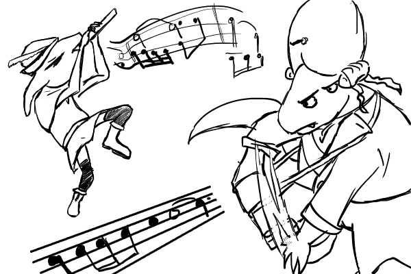 If any of you has five minutes, could you draw something from/about JimQuest? Anything will do; I'm out of delicious Gnome art and want to have something for next chapter's title page.