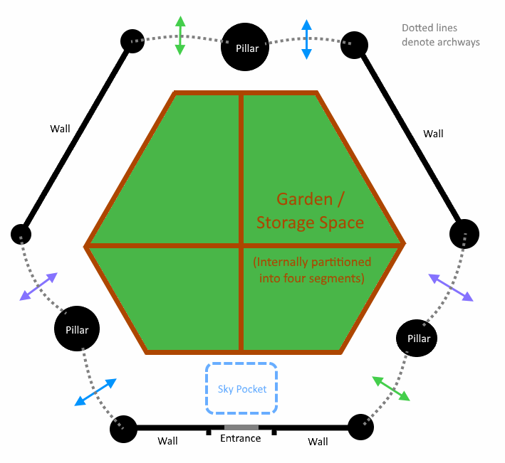 The Storm Forge is mainly reached by traveling from the Blood Mire directly against the pull of gravity, or in layman's terms, up. Necessary distance varies considerably by location, time of year, and other factors, averaging 200 feet, and is difficult to identify precisely without magic. At most a hundred miles of straight-line travel in any direction is enough to leave, but "straight-line travel" is harder than it sounds (an uncontrolled fall will almost always work, but might take several hours) because the internal geometry is mostly spherical - that is, large circles have smaller circumference than you'd expect based on their radius. As a result off interface effects (distantly related to the way the surface of water can be transparent or reflective depending on angle), someone looking back down into the Blood Mire after, say, climbing a beanstalk of abnormal size, will see a curved horizon almost exactly as if they were looking at a spherical world of finite size. This also makes extremely high-speed air travel less useful than IRL, since it's a choice between flying low enough to risk crashing into mountains, trees, and waves, or high enough to waste speed going in weird zigzagging loops. Gravity is on average weaker, and much less consistent. You want to have wire-fu duels in an Escheresque cloud palace, this is where to go.