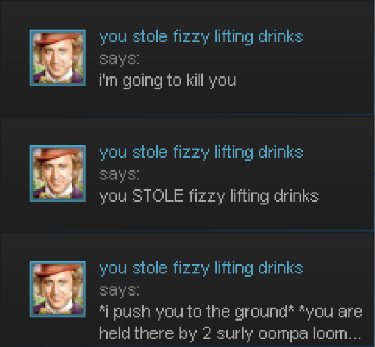 [i mentioned that most of the gore in tvrn will be more of the kill bill variety where someone's head gets chopped off and there's an absurd geyser of blood that lasts two minutes, rather than the saw franchise variety of lingering shots on things that are genuinely stomach-churning, then mused, "but the clowns will be bad." which led to the following messages]