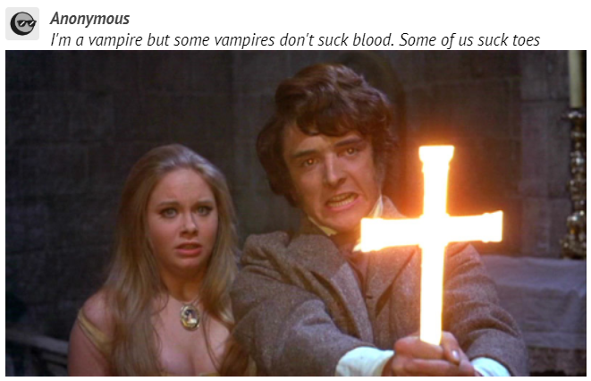 >interesting cos i assume that means vampires w/ an affinity for shifting steer clear of, like, fish. or dolphins or whatever. just picturing a vampire-shark just fuckin flopping around in the sea in agony