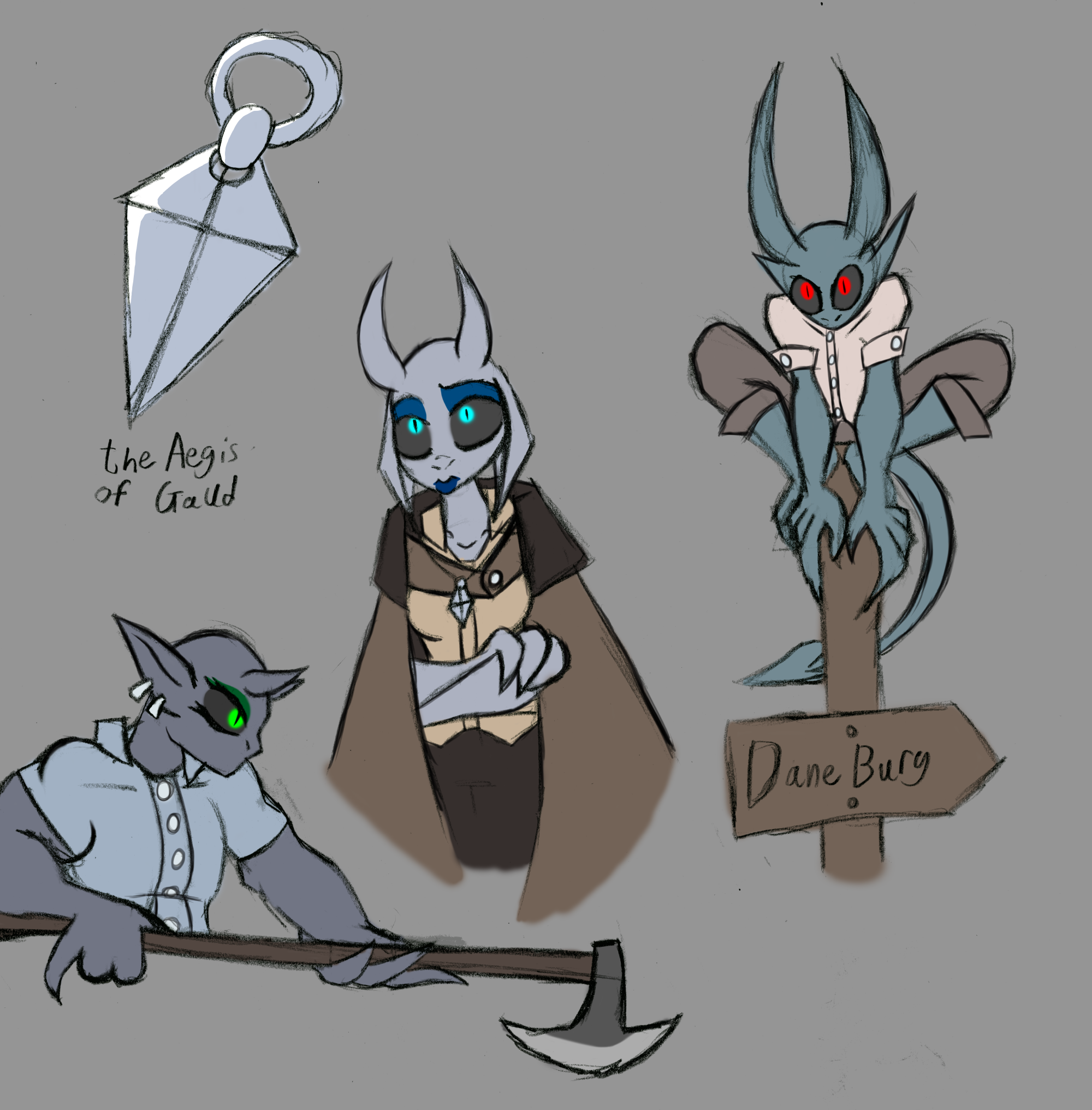 The Gaudian Bible claims the Gargoyle race began long ago, when a Greater Daemon rebelled against the Daemon Prince of the third circle of hell. The Daemon and his followers crawled their way up from hell and emerged onto the plains of Alt, free from the tyranny and injustice of their dark, dismal home. The Greater Daemon took the new name Gaud, and gifted his loyal followers the gift of mortality, allowing them to live amongst the races of Alt as equals. This creation myth has a lot of holes in it, however. The few Daemons still alive that witnessed the Ascension of Gaud say that he became the prince of the third circle himself, and that the Daemons that followed him were not made mortal, but given baronies in the third circle for their service. This does not dissuade the Gargoyles from embracing their alleged heritage, though.