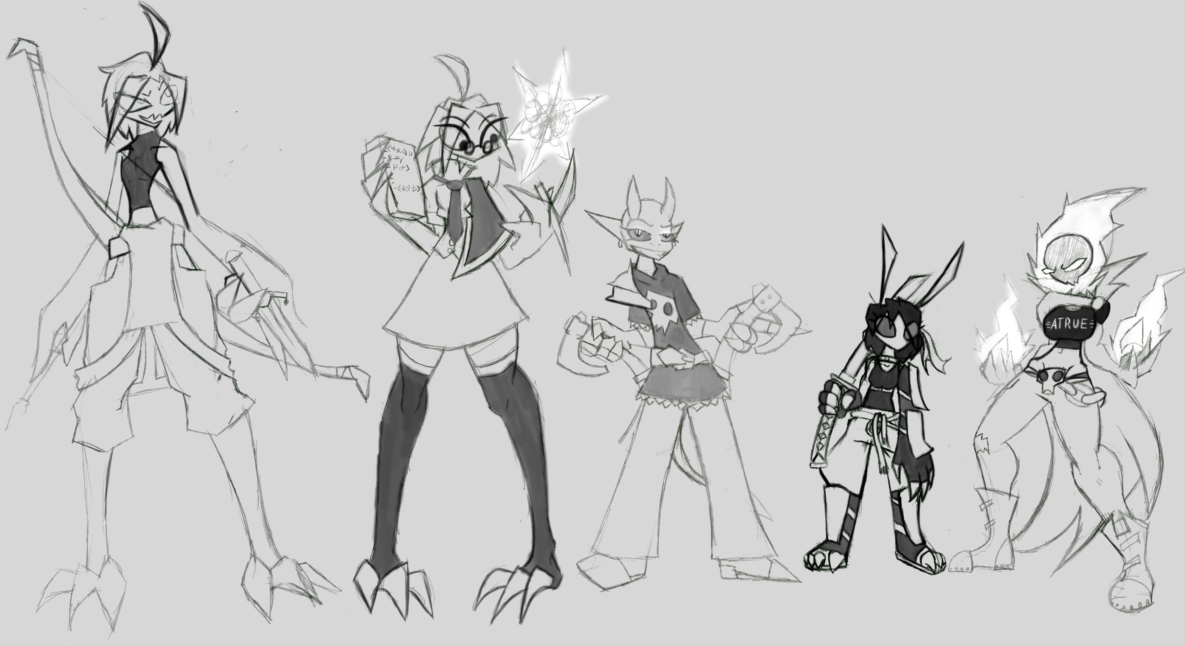 Makeup is very important to Gargoyle fashion. most Gargoyles, male and female, spend a lot of time during their morning ritual applying this makeup, and to be seen around town completely naked in the face would be a social foix pas. in contrast, Gargoyle clothing is quite spartan. Gargoyles tend to wear plain shirts and pants, undyed and often made from simple raw canvas, with a long leather coat worn on top to combat the damp cold of their homelands.