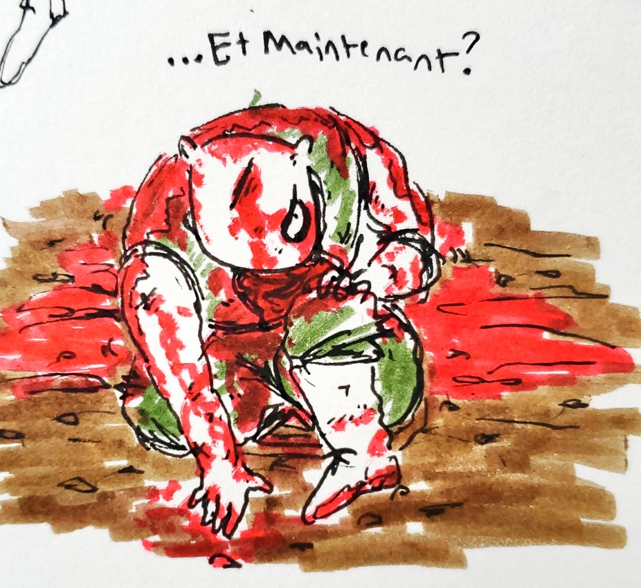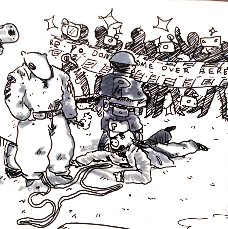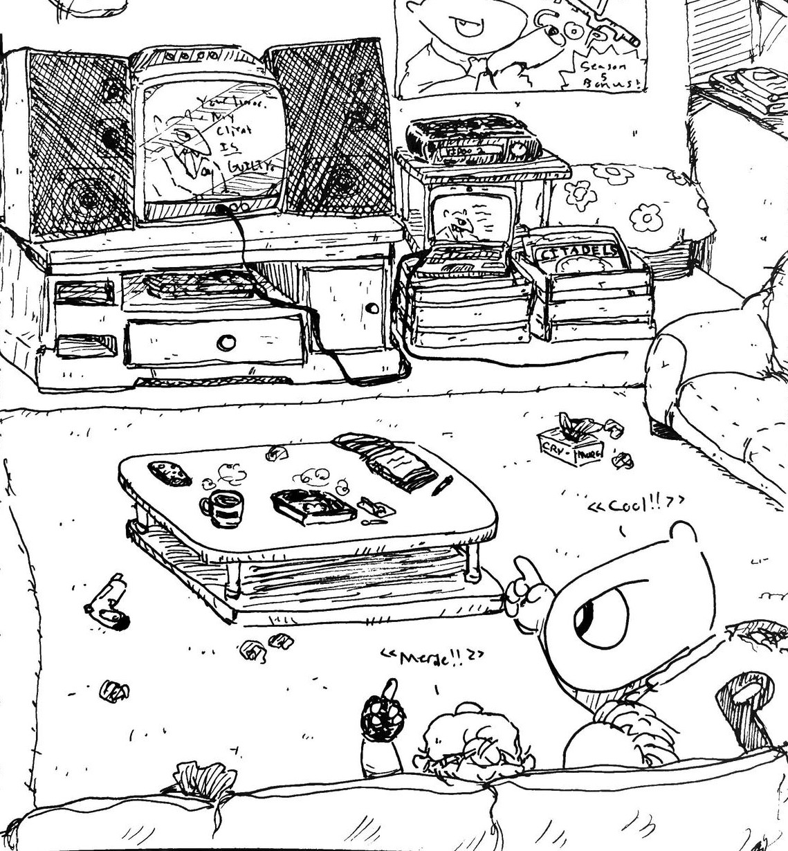 In other news, my gf gifted me a tablet that I actually feel comfortable drawing on, so I might experiment with working fully with digital for updates, moving forward. Very alien and exciting territory for me haha, up until now I've drawn everything with a pen and scanned it to add color. Ideally things won't look that different--this tablet actually feels good to draw with, unlike my old one.