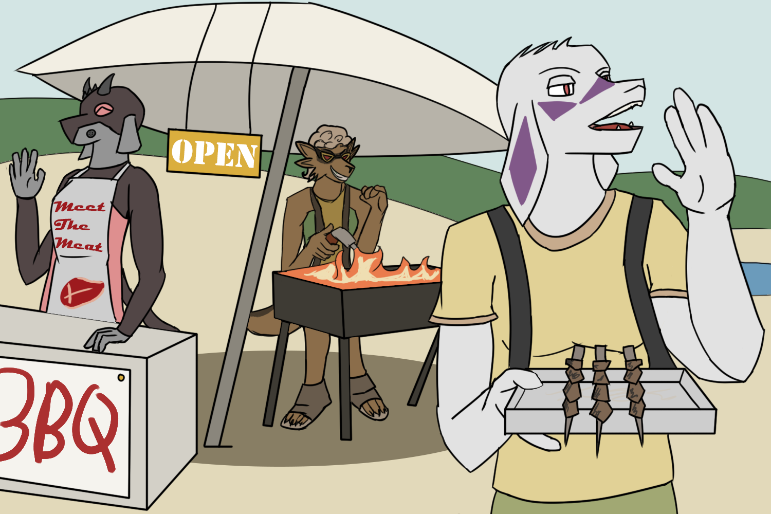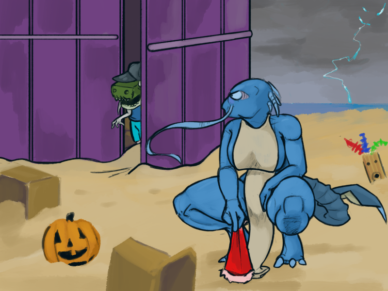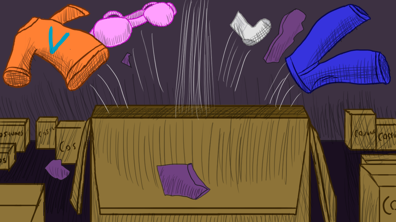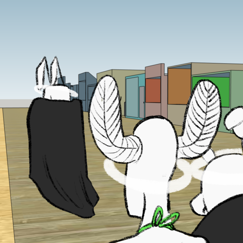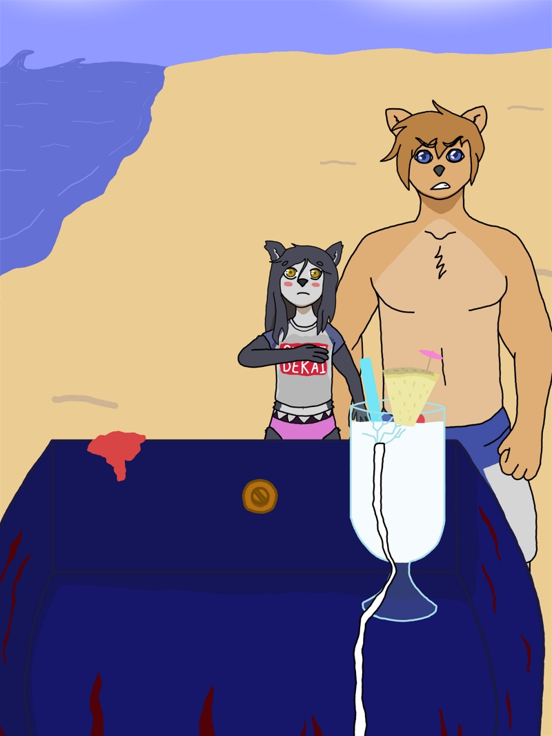 Before the blue girl can say anything, her sales partner disappears out the back, the door slamming behind her.