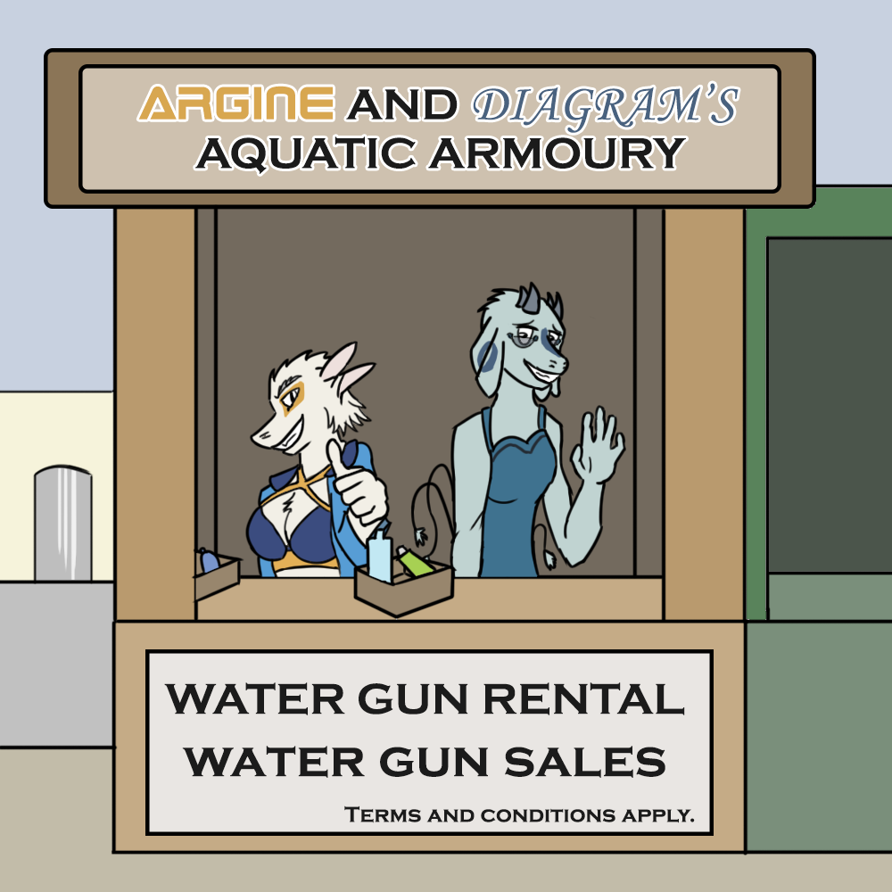"You're so thoughtful, getting something nice for your girlfriend! I'm not sure what she'd want to put in these, though! Water works best in these guns. They're meant to be fun toys, right? I guess you could use other substances if you wanted, but the results get unpredictable otherwise. I remember that time someone snuck in some imported honey from one of the nearby worlds, and things got a little explosive, pardon the metaphor."