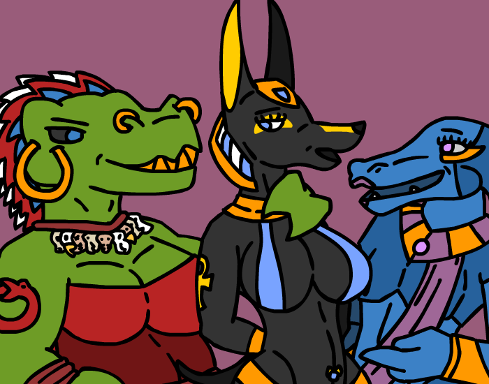 Volek: “How can I chose one gender when all of them require my presence?” the crocodile muses while rubbing his own belly, “After all, to ensure my fertility never wavers, I have to be all genders at once, no? Though I do prefer to be called a he, as I am but a father to all those that are born in my name.”