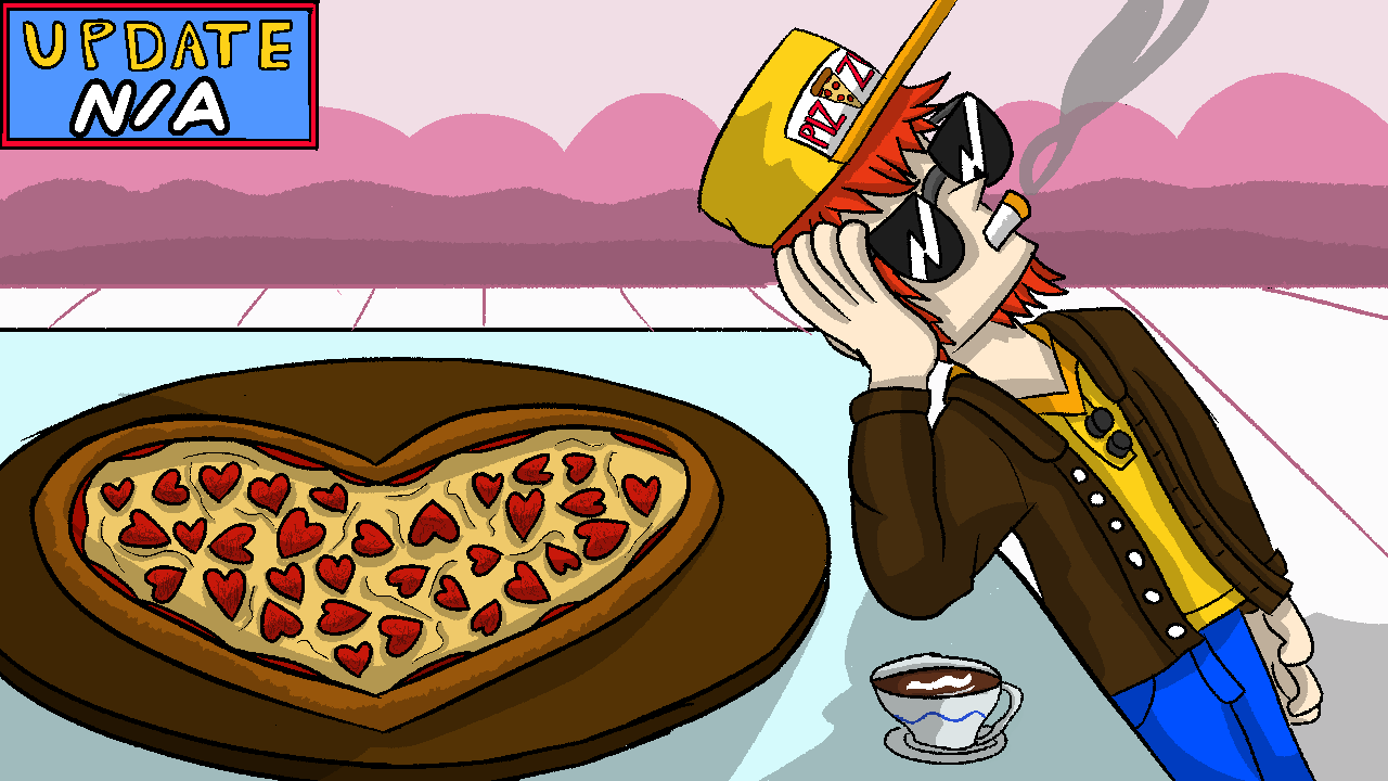 After Jerry received the request for a pizza, he tells the customer to give him a moment. As the customer wanders off to talk to someone in the corner, Jerry takes some time to clean the snot off his nose, and then like clockwork instinctively goes through the motions of cutting the pizza into a heart shape. After he gets that done, he calls the customer back over to hand it off.