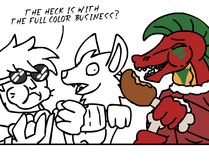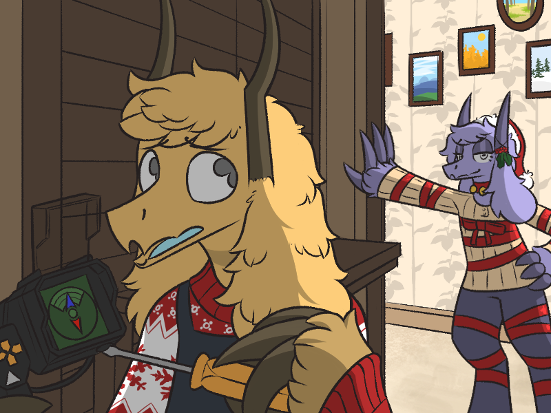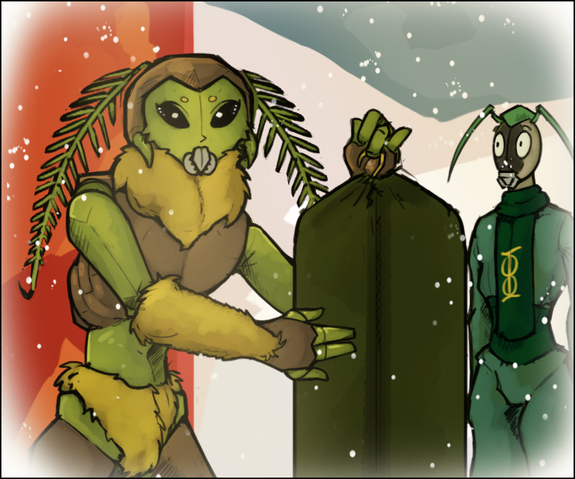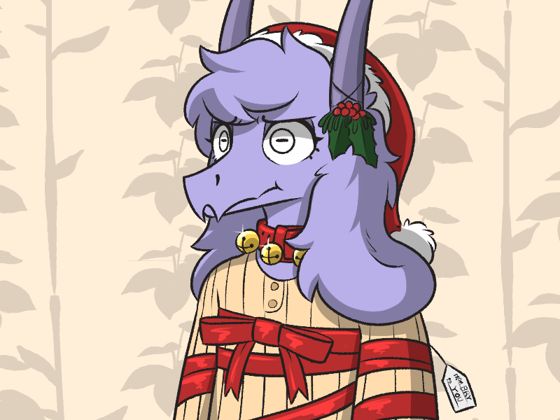 Of course you agreed to take part in her gift exchange, and of course you were paired with people that didn’t exist. You’ve gotta give Temmie credit on how fleshed out she made your giftees though, the page she’d tossed at you was very well-written. You wouldn’t have expected her to write about Clone Super Soldiers of all things. Seems very off-theme for her.