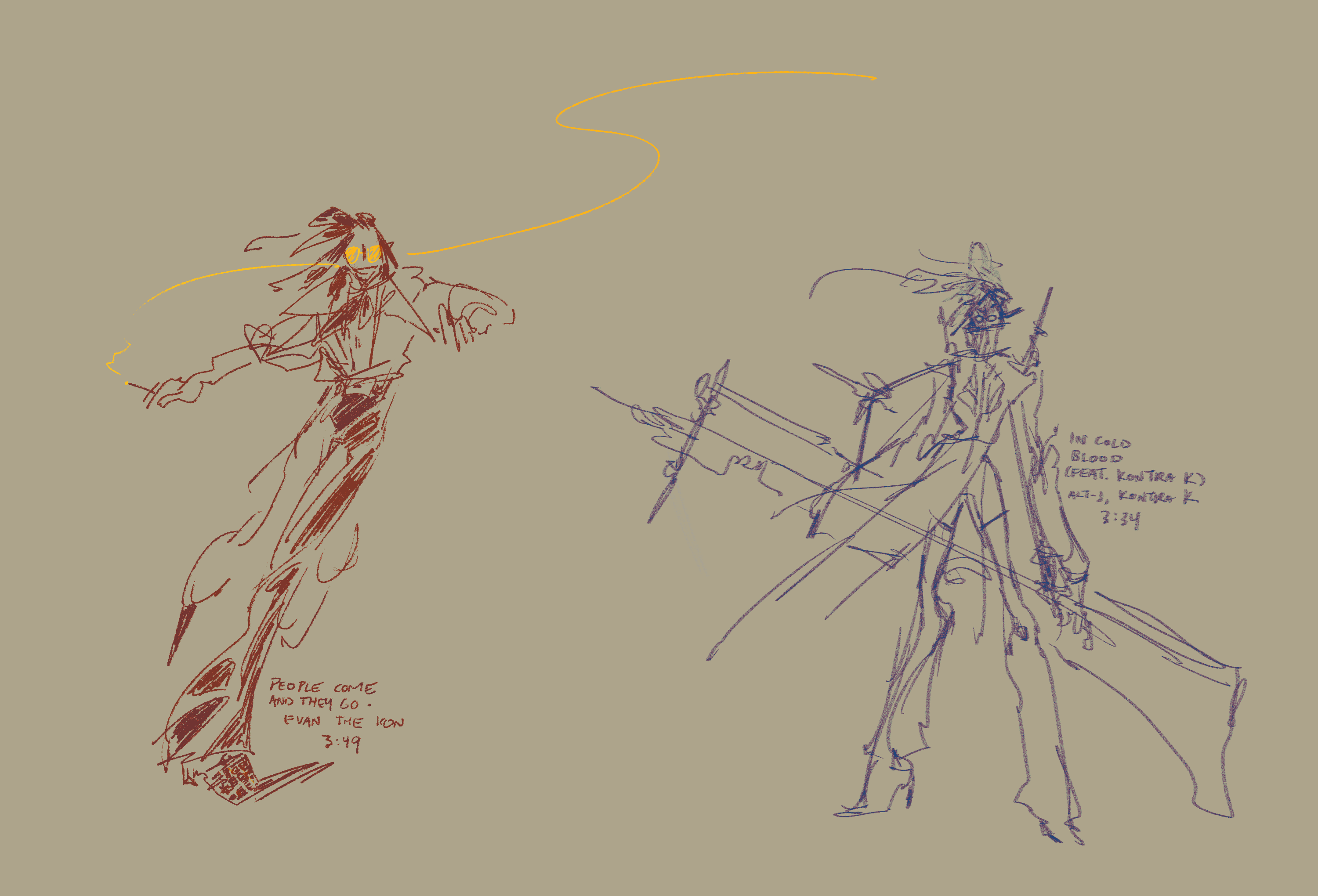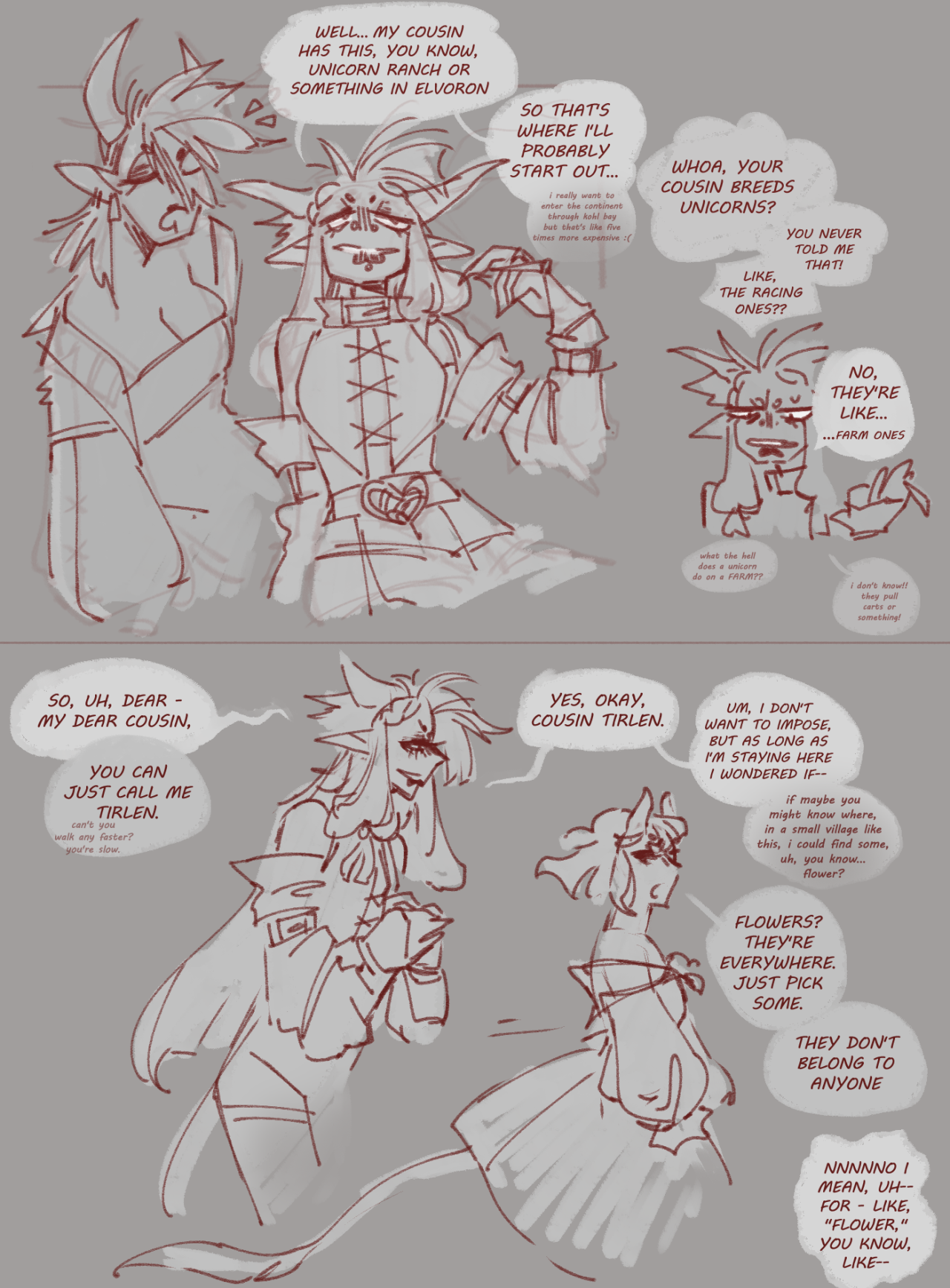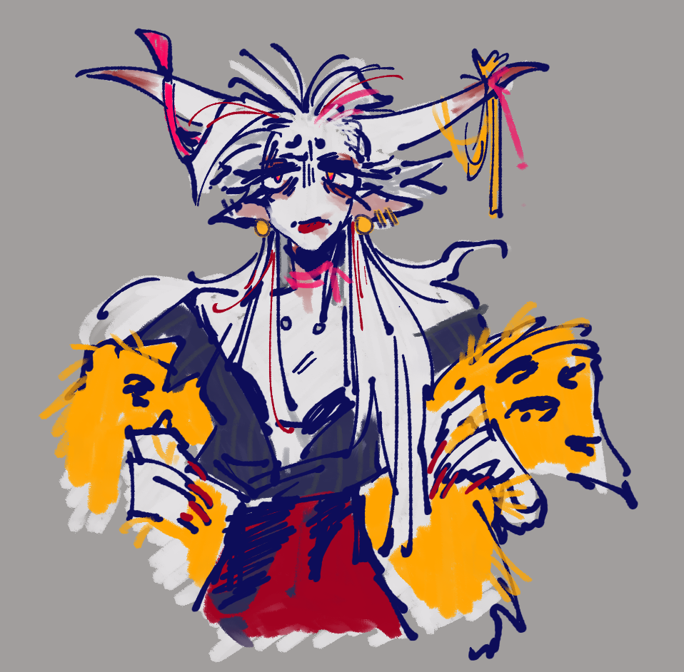 ANYWAY THANK YOU EVERYONE FOR THE VITTORIO LOVE/HATE as always with my quests i cobble together a bunch of ideas and characters from stuff i make with my wife — vito's my wife's oc, i've just been given custody of him and now i'm allowed to draw him in bad colors and grind him up into sausage. smiles