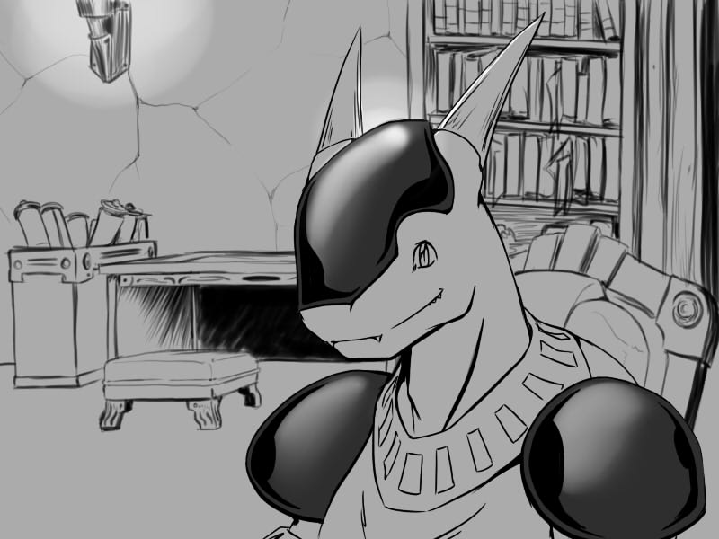 Oh, whell, I'm a Vataruk, or "Daragon" as the humans tended to refer to us. At the risk of tooting my own horn, I'm a rather well known scholar, if I do say so myself. I collect information, history, and tales and provide access to said information to anyone who might desire it. I am fluent in several languages, including ancient Draconic and ancient Elvish, which are considered "dead" languages. You were waiting here in my study when I arrived, so I just assumed you were interested in hearing a story. The one I have been telling is a historical documentation.