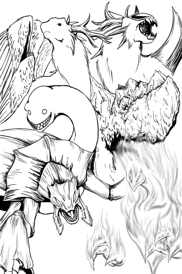 The Monster-kin were one of the Lord of Creation's later works. According to legend, during the War of Creation, the Lord of Destruction, lacking any means to create an army of his own, discovered a way to develop his army while, at the same time, adding insult to injury, as it were, to his rival. By using his power and corrupting the Lord of Creation's creatures he would force his rival to battle against his own children. Many animals were easy to corrupt with their simple minds, even the mighty Spirit Dragon Zurkan fell to his corruption, resulting in the Dragon of Destruction. But these twisted and monstrous abominations that the Lord of Destruction released into the world spread quickly. Their new forms and power allowing them to gain an edge over the native creatures.