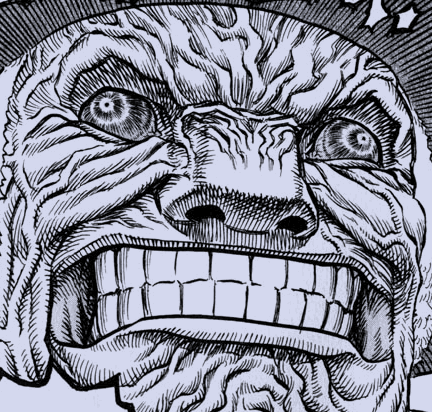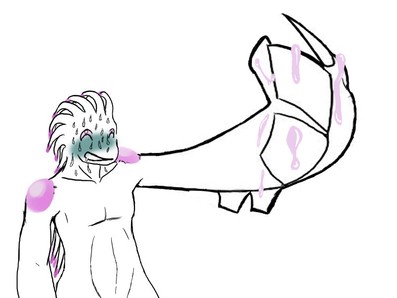 The shed began to rock once more, Alan frantically searched the knot-holes for any signs of the monster, but threw himself back against the pile of tools in horror. Through one of the knot-holes, the horrific mangy beast had begun, impossibly, squeezing through, it’s head and neck already in the tool shed, the skin and fur on it’s horribly eyeless head pulled back revealing rows of horrible, sharp, serrated fangs, drooling in anticipation of its next meal, the long nick ridden ears constantly fixated on Alan. He screamed.