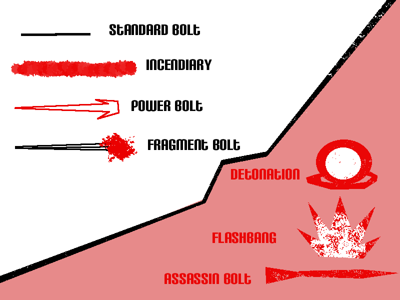 Flashbang: Anyone caught unprepared when this bolt goes off is stunned and blinded. At more points, its area of effect grows and the stun is more severe and longer lasting.