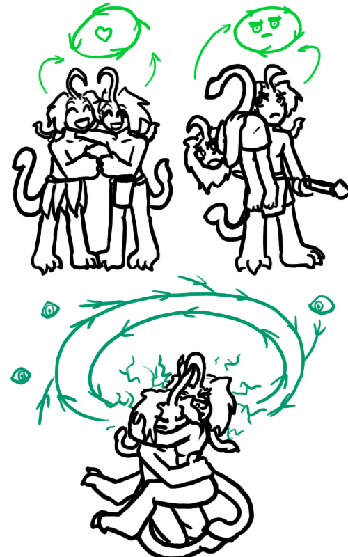 Psychically, primitive scellor were far less developed than their later descendants; most individuals were capable only of empathy (actually pretty similar to Lagotrope's neumono) and basic telepathy with individuals with whom they were "attuned", usually members of the same community. There was a spoken language, several of them in fact, but scellor vocal cords and diaphragm control was always rudimentary (modern scellor are even worse), and the relatively simple sounds they could make to form words had to be augmented with empathic inflection. Beyond that, other psychic powers were rare, but almost all scellor would at least have heard stories about them; for the most part, any serious psychic potential was the domain of hermits, mystics, cultists and occasional rare prodigies. Working in groups was a necessity for any truly impressive psionic feats, again except for rare individuals. Scellor could, as they do now, use psykonium to enhance their psychic abilities, but deposits of psykonium had a tendency to attract various giant monsters and other living dangers. Overall, psychic powers were treated like magic! And relatively low magic. Perhaps some day it'd be interesting to do a "sci-fi fantasy" story set in this time period, but not any time soon. Or perhaps someone else would like to? Hm. Well, let's move on.