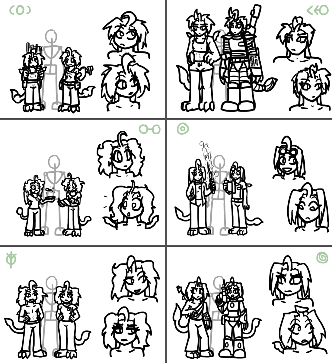 The different castes didn't exist. Instead, as described in previous posts, there were three major races - illustrated here from left to right, girls along the top and guys along the bottom. The first, older race might be referred to as pygmy scellor, being small, and who lived in tropical swamps, marshes and waterside forests by preference. Then seafaring scellor, who lived on islands and archipelagoes; and, finally, the giant scellor (actually only about the same height as a normal human), who lived on what you might call their planet's pitiful excuse for continents. The largest continuous landmass is smaller than australia, and even then is a twisty mess of fjords and inland seas, riddled with volcanic activity. Again as previously mentioned, the scellor homeworld has a thinnish crust with smaller and more numerous continental plates than earth, and its extra suns and moons contribute both to the geological activity and chaotic weather. Natural disasters were a problem for all the ancient scellor.