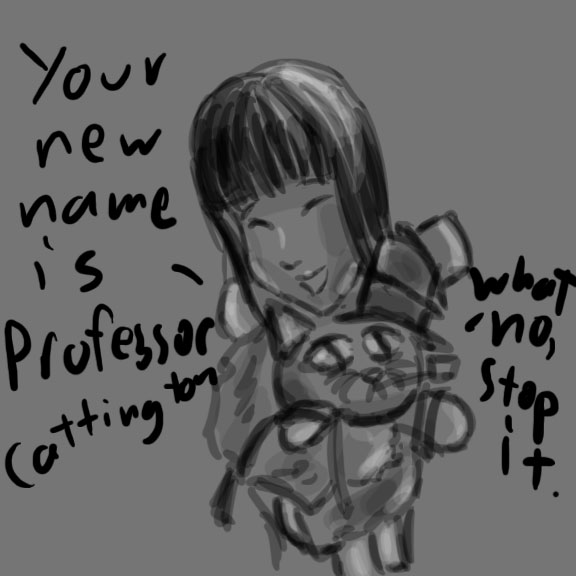 It wasn't turning out how I wanted and I was getting really frustrated, as I don't draw chibis and they were turning out less cute, more bad, and in the end I just opted for the simplified conversation between Cattington and Sammy.