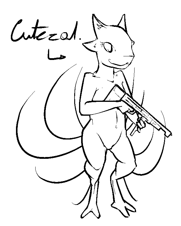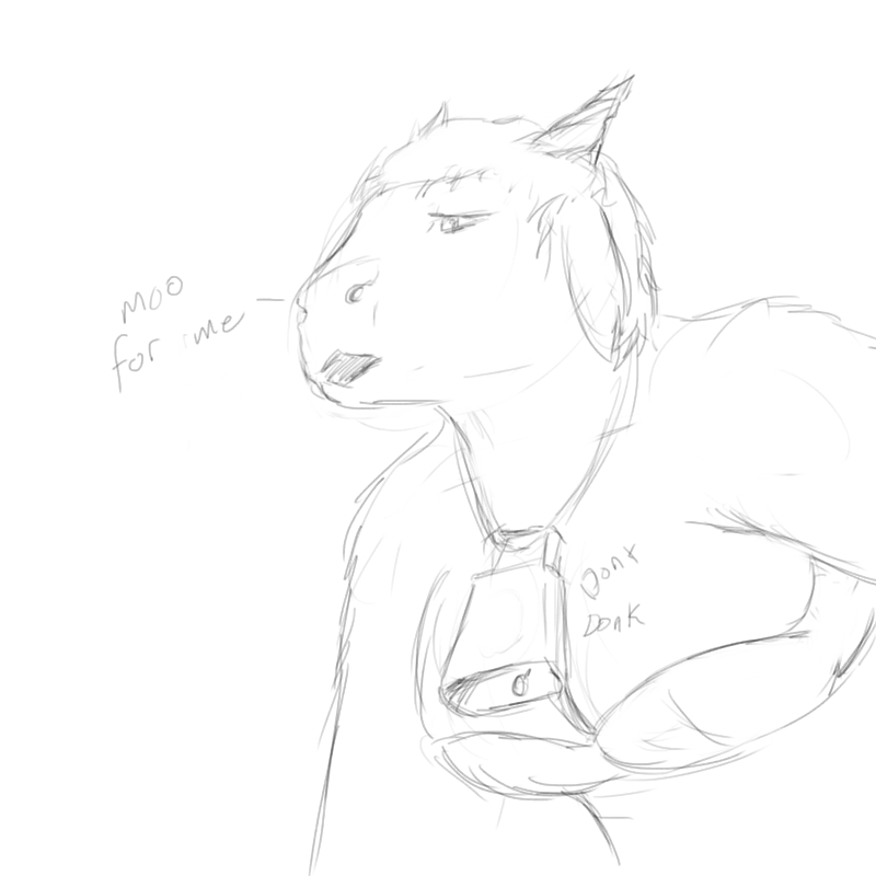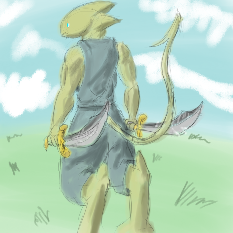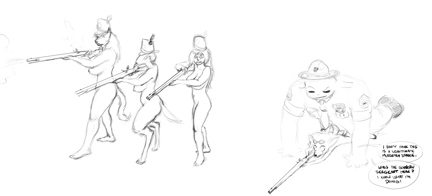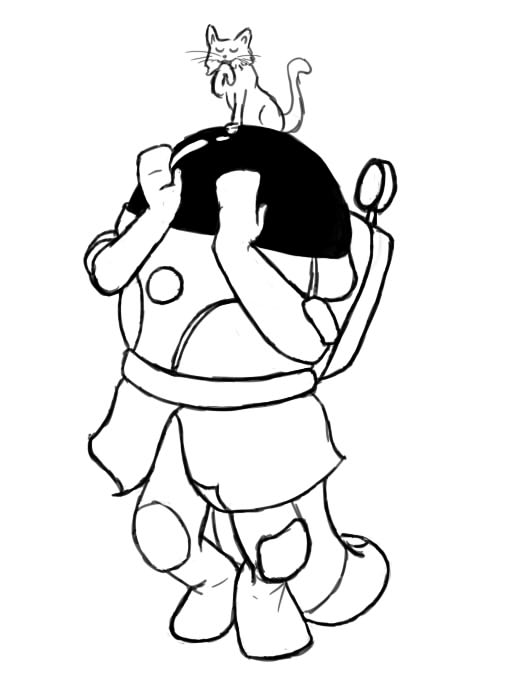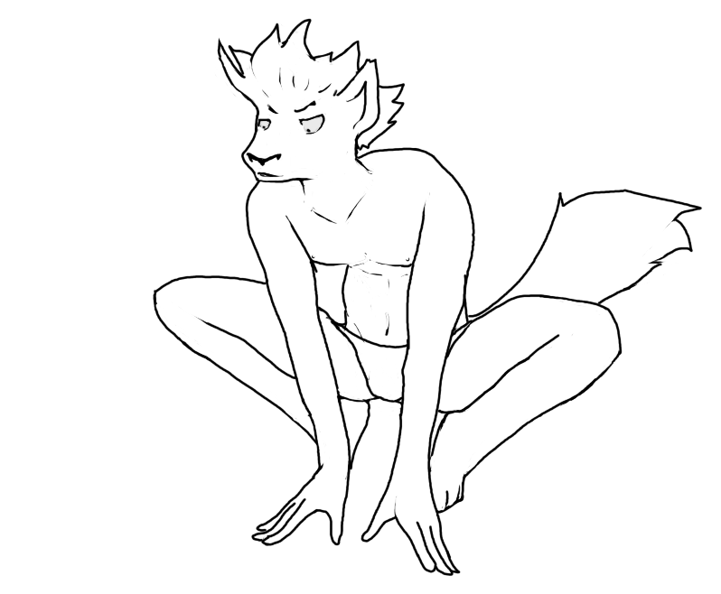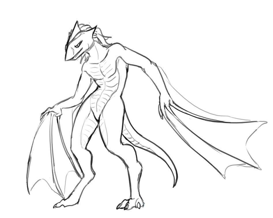 The legs ended up looking too short (and the left/bottom leg way too thin) because I tried to forshorten them since they're facing toward the camera and failed pretty hard at it. I fixed up the bottom leg a bit in a minor revision but didn't bother posting it here =V