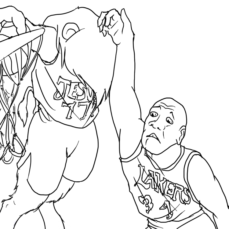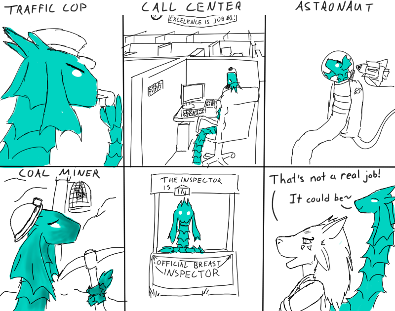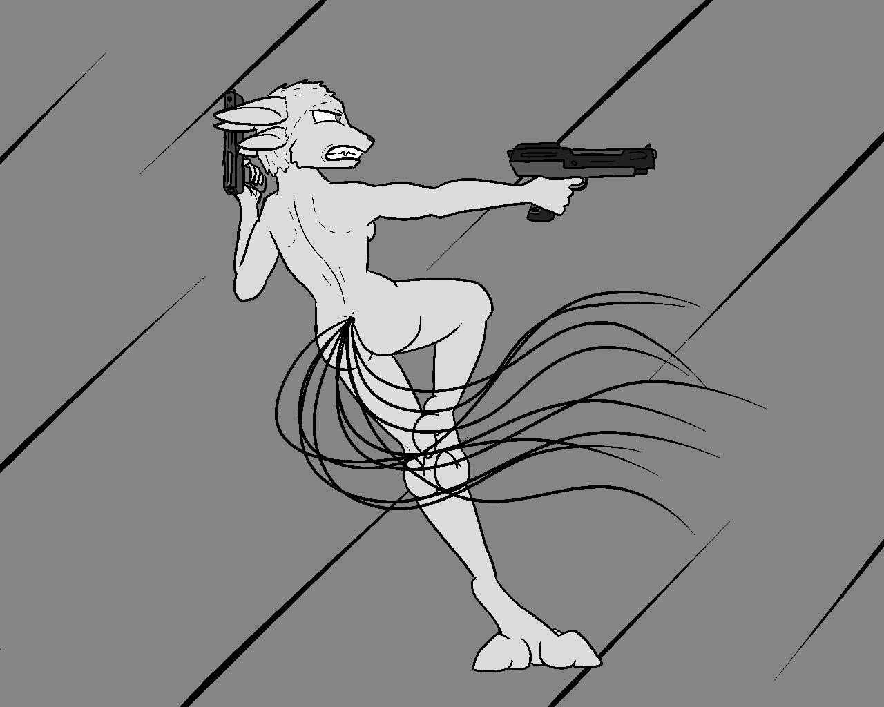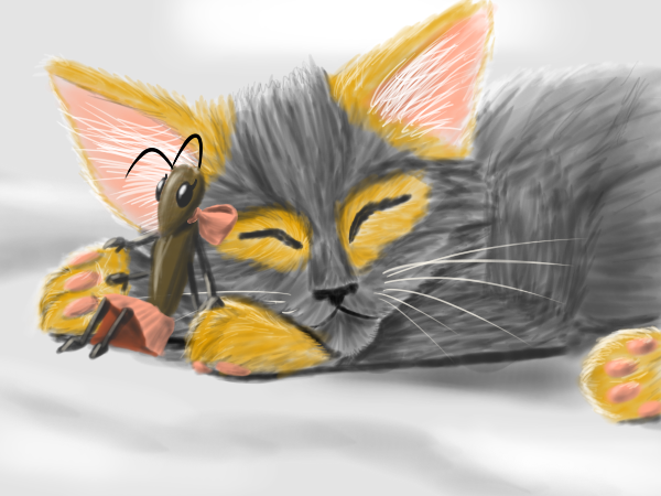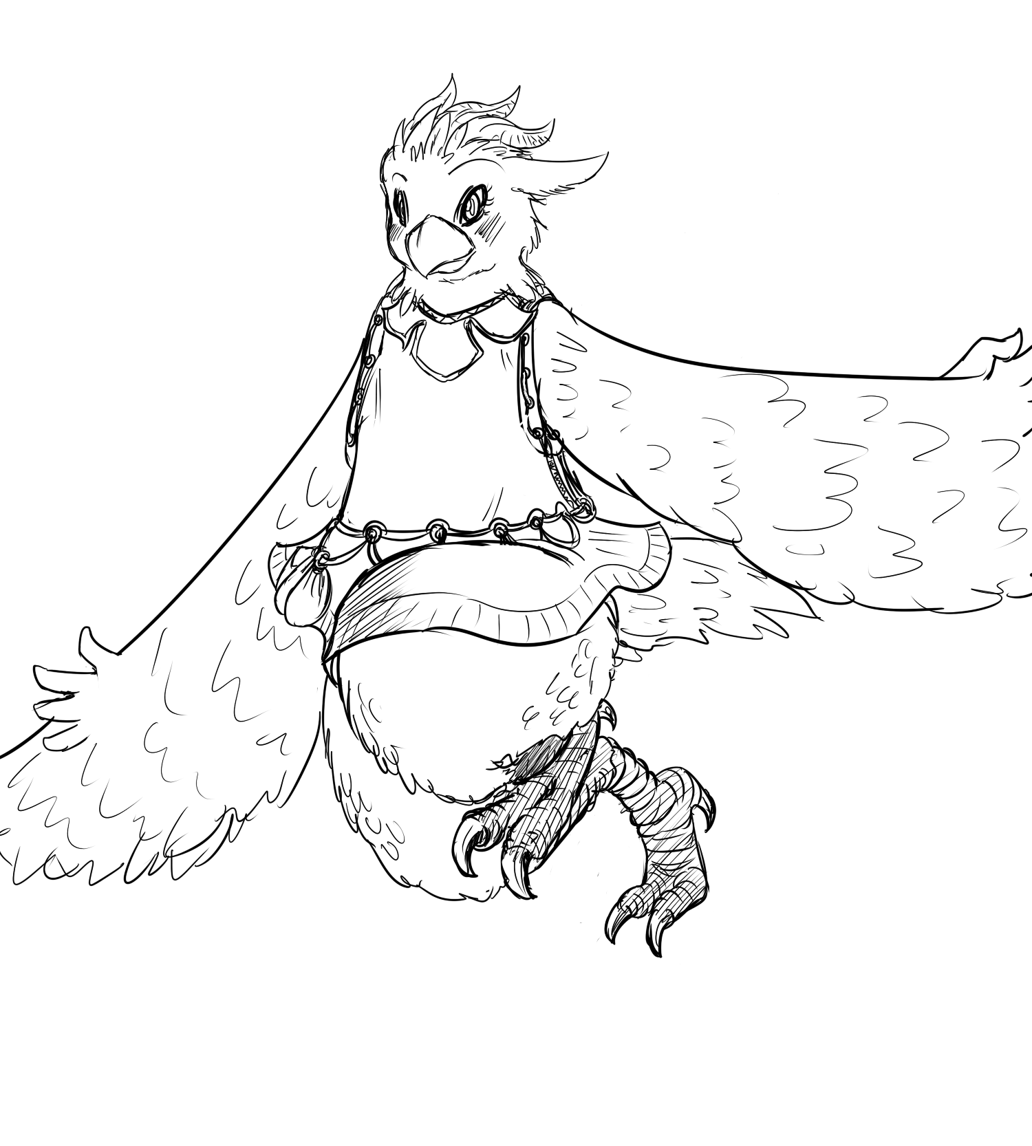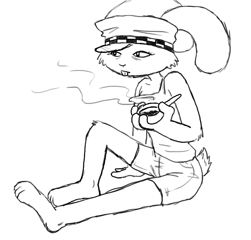 The legs ended up looking too short (and the left/bottom leg way too thin) because I tried to forshorten them since they're facing toward the camera and failed pretty hard at it. I fixed up the bottom leg a bit in a minor revision but didn't bother posting it here =V