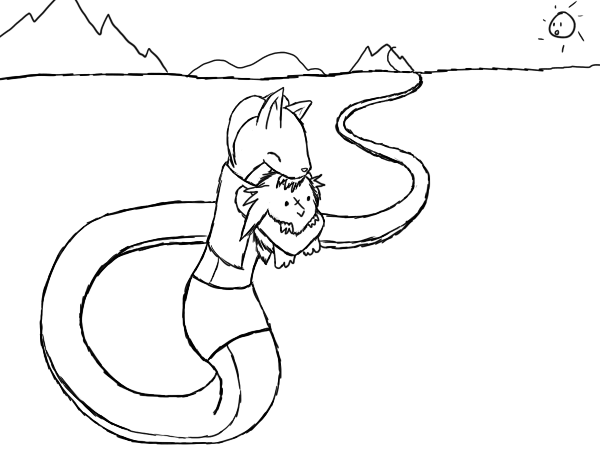 The tail is mostly a casualty of resize/cropping. It's actually going farther out and then looping back, and may actually have been a bit too -long-, but I resized the base sketch in order to make better use of the canvas space and the loop got snipped as a result.
