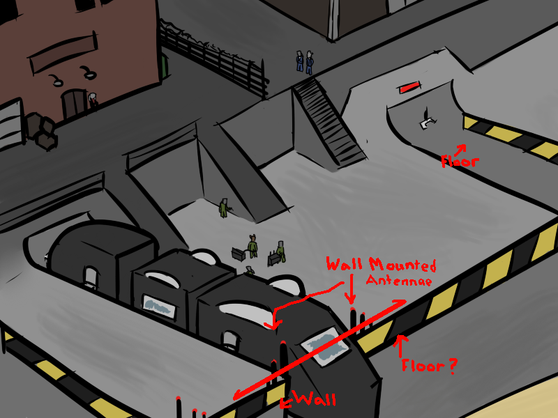 On top of that, I'm not really clear on what's up with that black and yellow construction stripe. It's a loading zone so there wouldn't be a big wall where you pull the trucks in, but it looks a lot like there is. <pic attached>