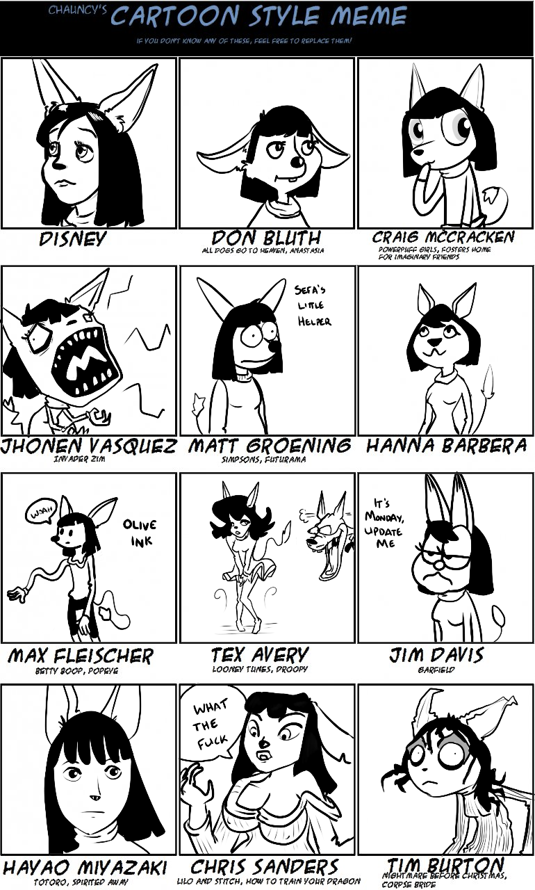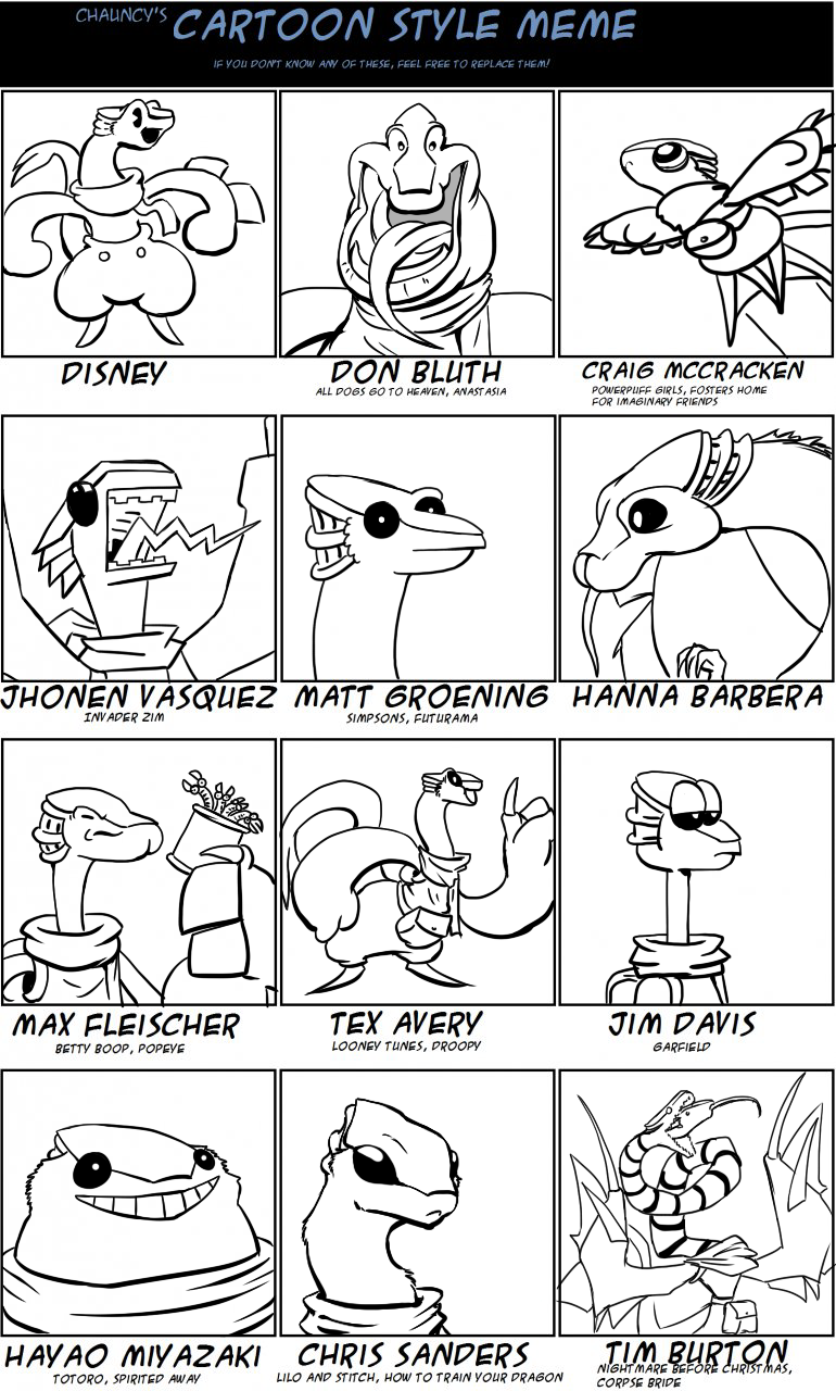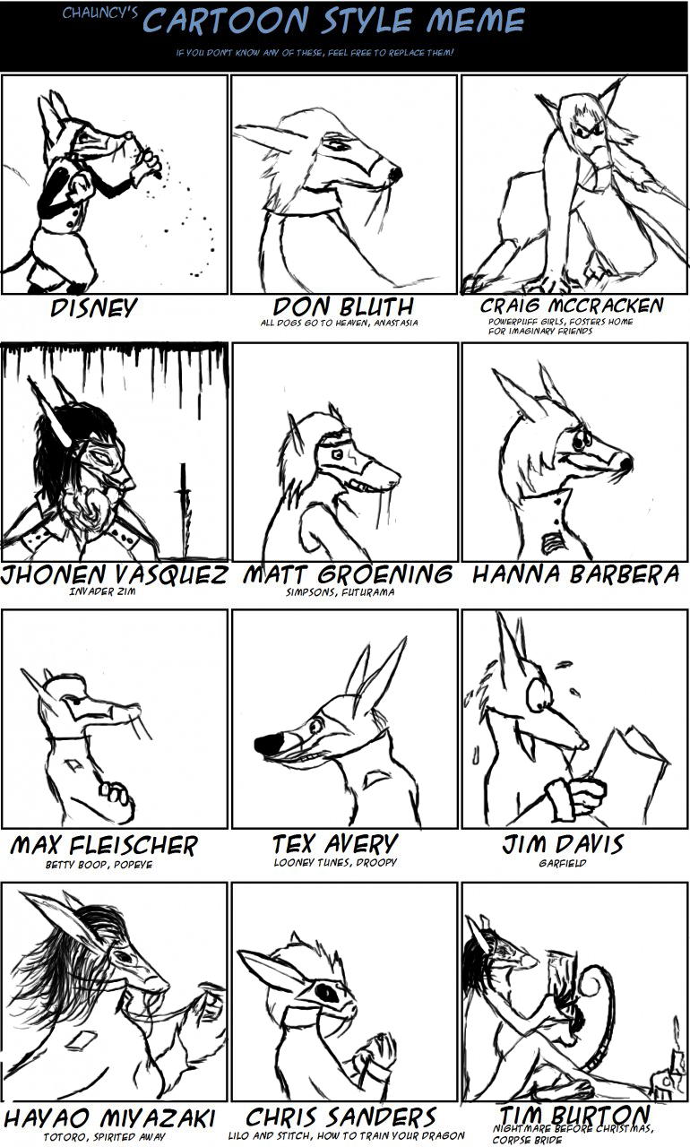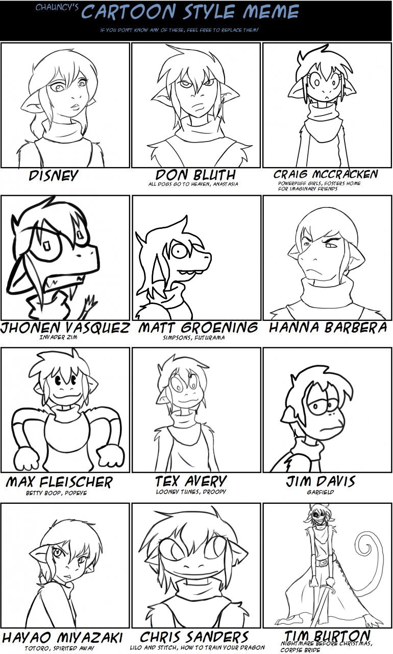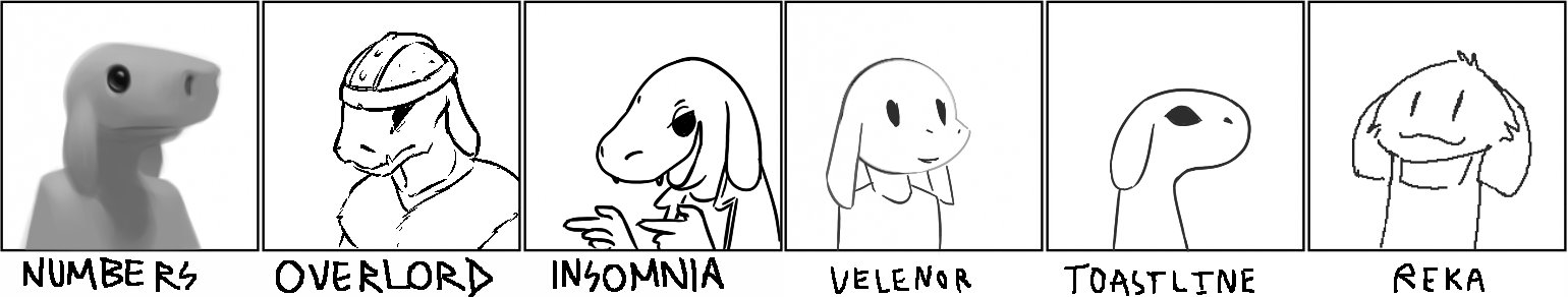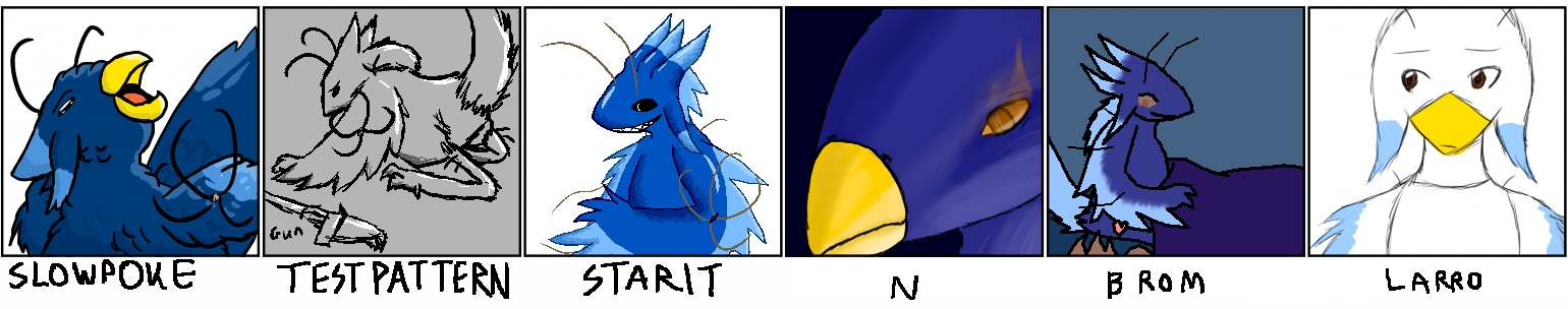 Reaver, Weaver, Cirr, Breakie Helmet, Gnoll, Jukashi, Bitequest, Slinkoboy, Rottel, Farmer, Lagotrope, Flynnmark, Slowpoke, Test Pattern, Starit, N, Brom, and Larro are all the artists behind it, so far, I think. Pretty sure it's just a comparison, not one person emulating everybody's styles?