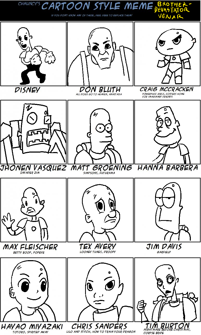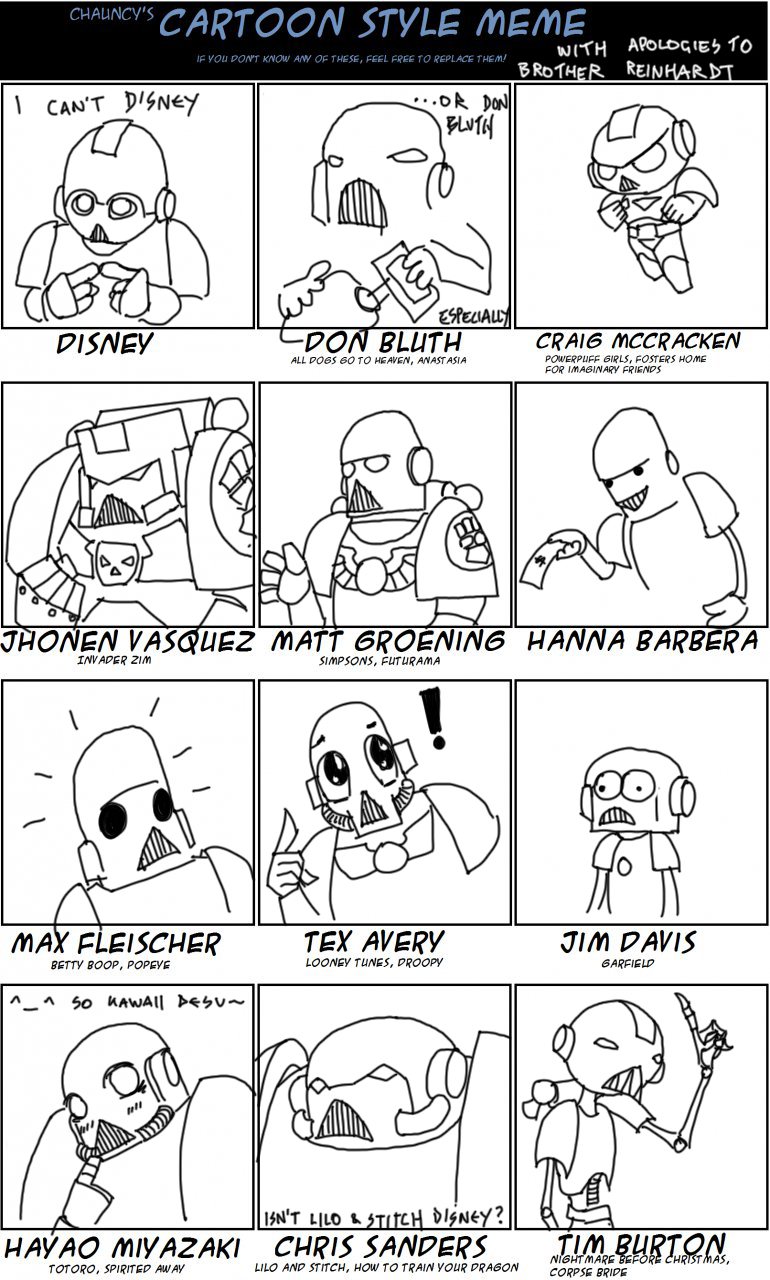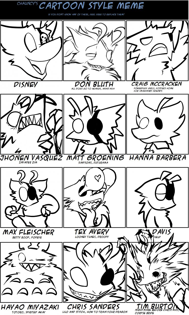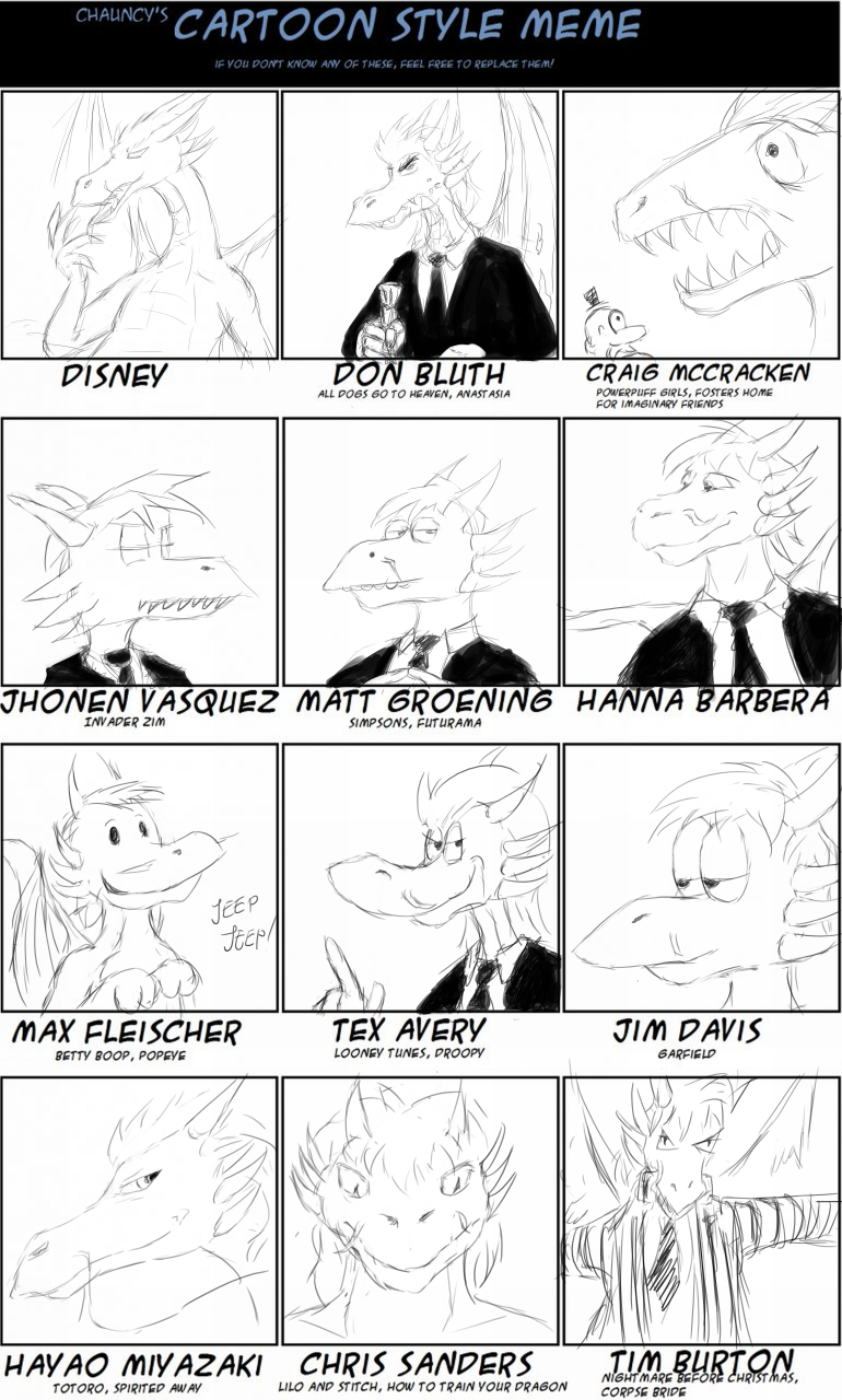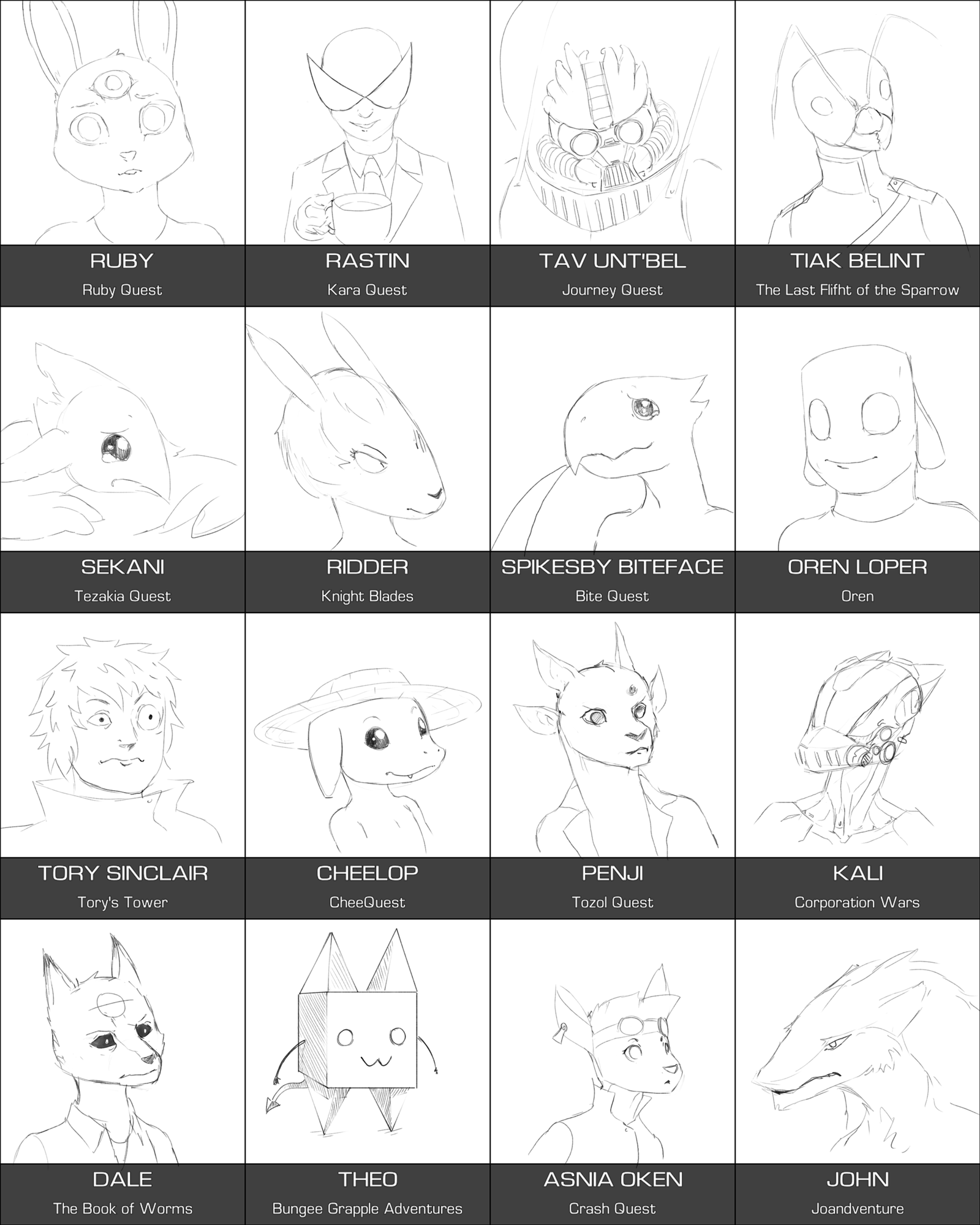 Reaver, Weaver, Cirr, Breakie Helmet, Gnoll, Jukashi, Bitequest, Slinkoboy, Rottel, Farmer, Lagotrope, Flynnmark, Slowpoke, Test Pattern, Starit, N, Brom, and Larro are all the artists behind it, so far, I think. Pretty sure it's just a comparison, not one person emulating everybody's styles?