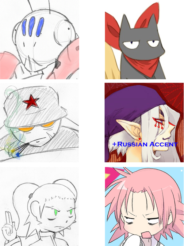 Naw. They do have their own "voices", in the literary sense of phrasing and rhythm and so on, the way they say things, but there's not really any sound in my head. I have thought about it, but the only one I came up with any formal guidelines for is Maolla, and even then it's just "somehow both sort of sexy and sort of annoying at the same time". Aside from that it's just very very vague stuff, like... well, heck, I guess I'll write them out, what ones I do have a solid enough idea of to describe.