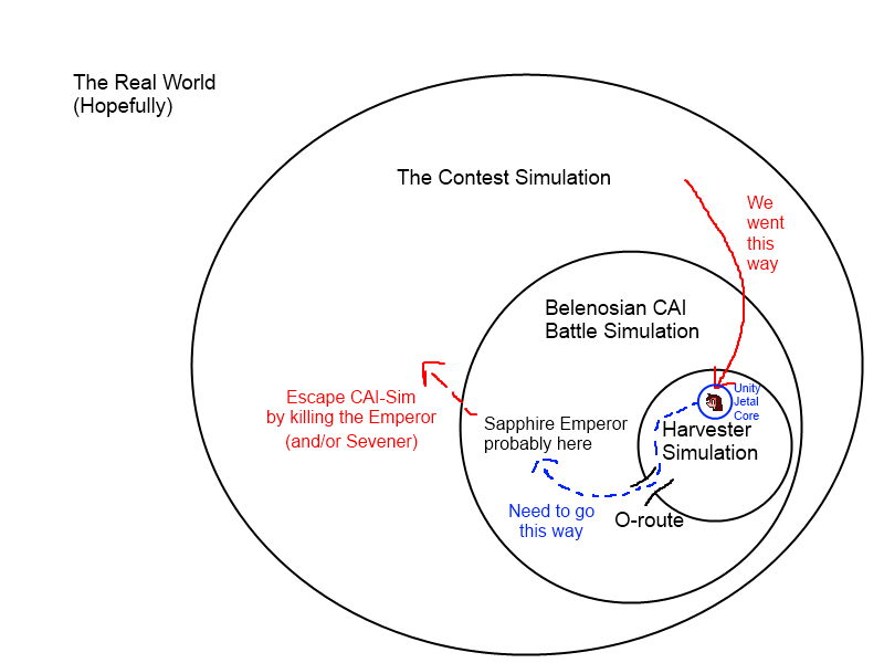 Also, Lagotrope wouldn't have to suffer through the inevitable soapbox marathon to come once Hive diplomats show up. He could just simply decide if our plan succeeds or not, either with a roll of dice or however Lagotrope decides things that happen in his quests that could either be successful or a complete failure. And all the words can happen behind closed doors or with delightful, possibly humorous highlights because we just stuck a bunch of diplomats in a room with opposing diplomats and there's bound to be shit flinging.