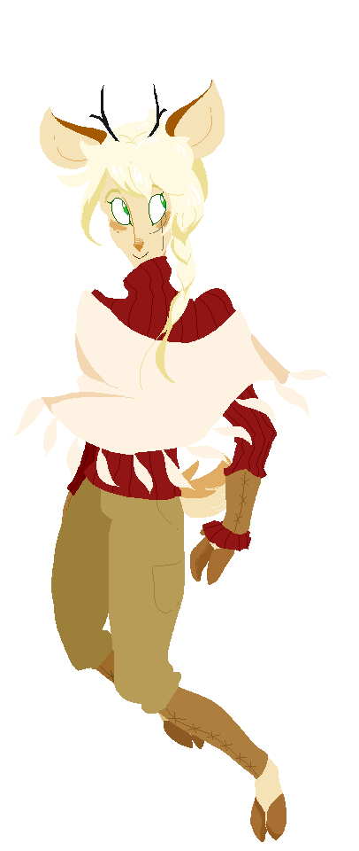 Lief has lighter fur than would be considered ideal for a Traurig, and his horns may be tall, but they only have two points each. The fact that he doesn't have motif markings on the bridge of his nose is jarring or awkward-looking to a lot of deerling, and also he's just sort of scrawny and pointy and stuff. (His general air of LEAVE ME ALONE might scare away potential suitors, too.)