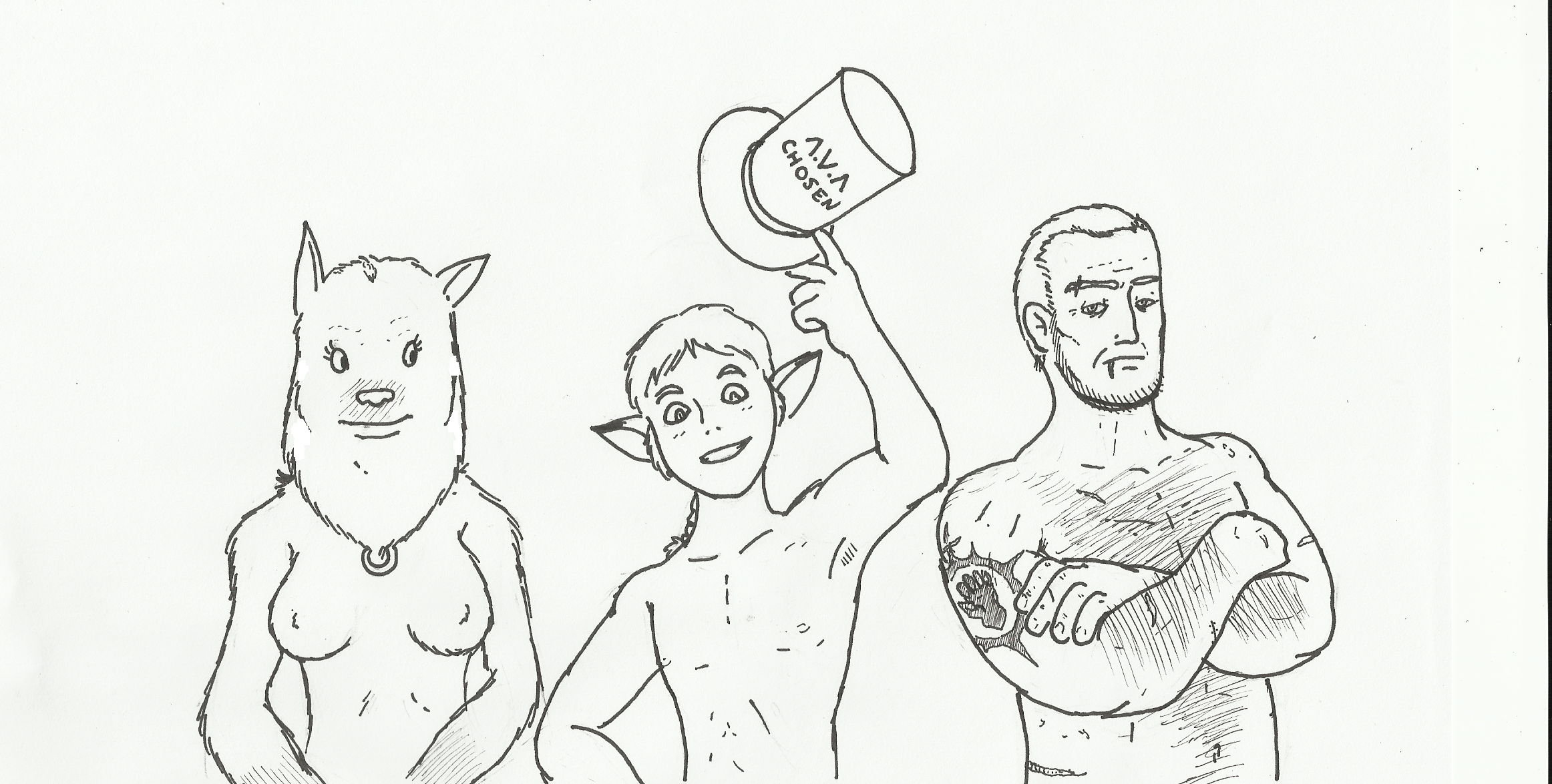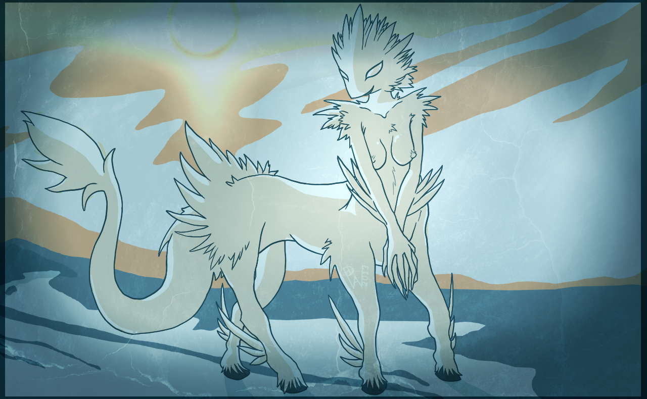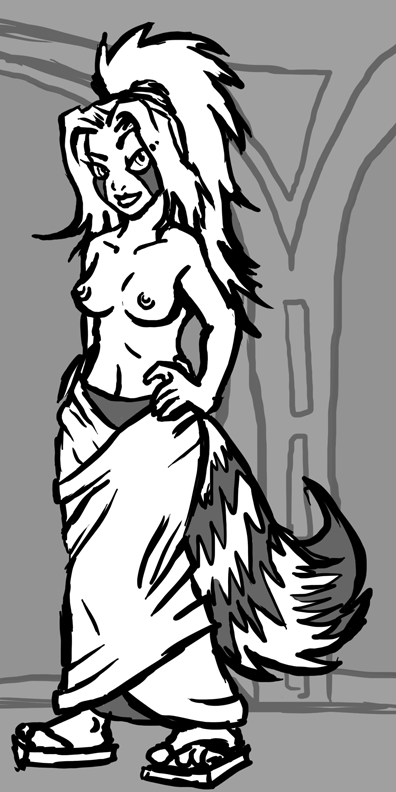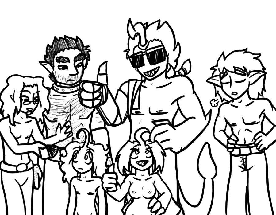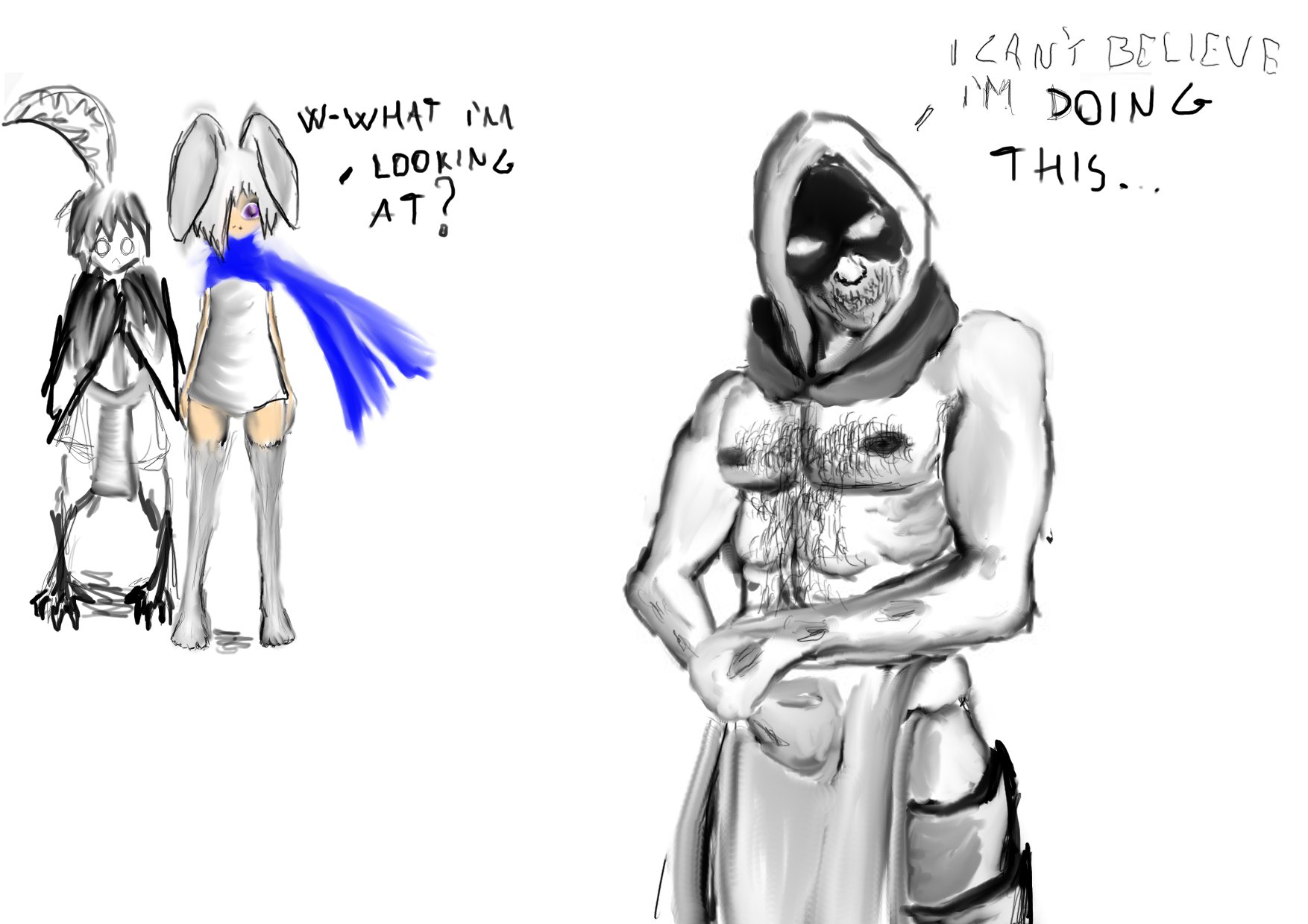 Randomly generated race that I may include in a future quest because this way my terrible art doesn't grossly misrepresent any active quest characters. Random background because 1:30 AM