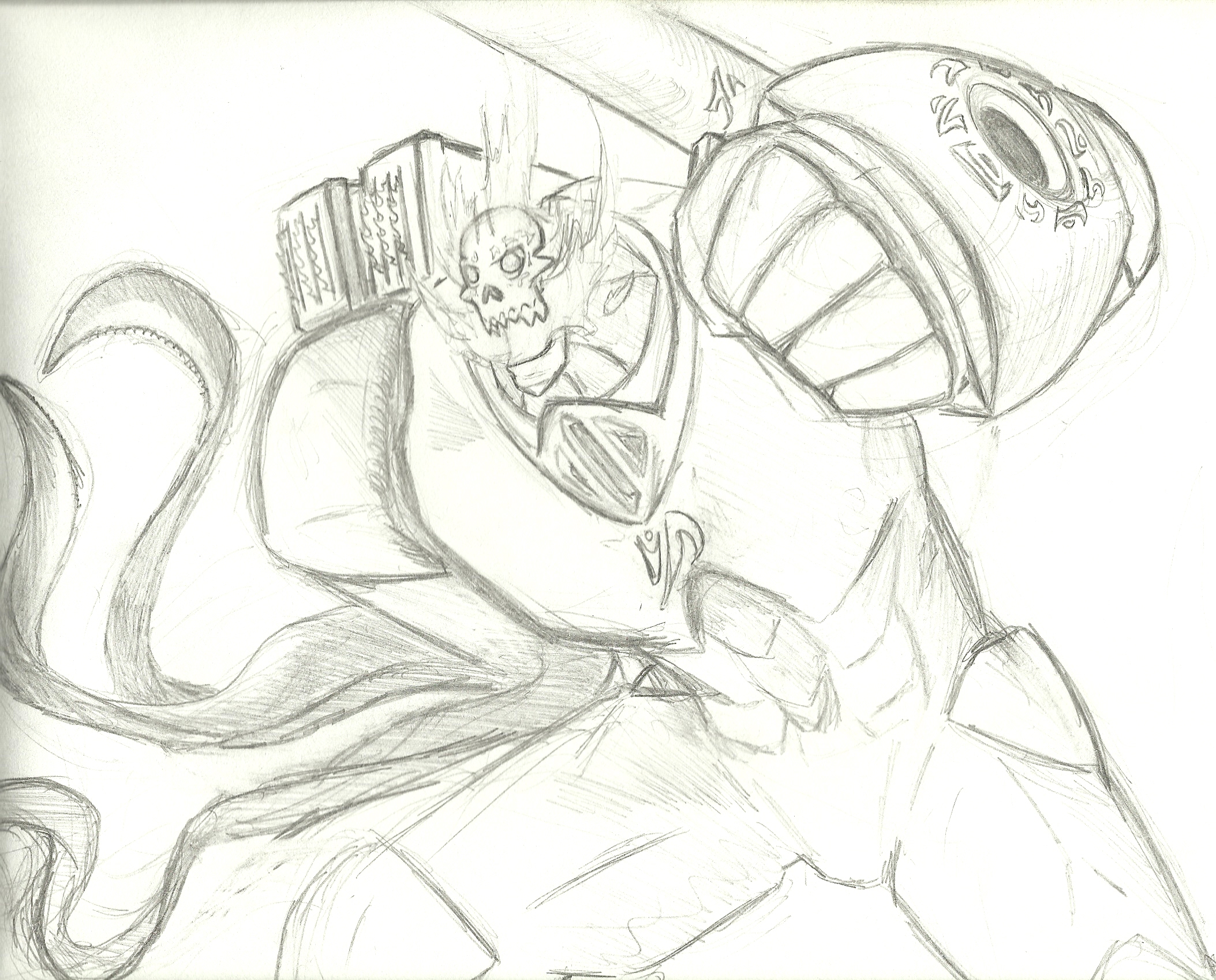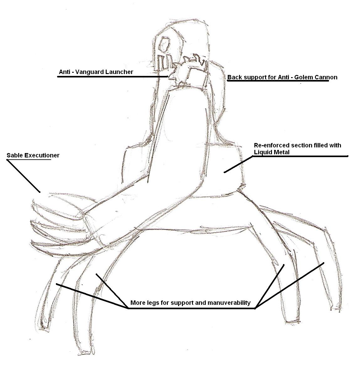-(Left Shoulder Mount) Anti-Golem Cannon (HS: Ozmand The Hammer, Balboa The Butcher): An enlarged and elongated cannon with heavy rifling, that fires a massive, spiral etched spike, designed to punch through even large masses of metal. Each shot has incredible piercing power, and anything the shell punches through will be struck by a ghostly hammerblow, able to crush stone and break bones. Further, the shell creates a potent vacuum about itself, and is able to maintain maximum velocity until impact. The round is larger and more complex than normal, and takes three hours rather than one to regenerate (30 minutes with dedicated Magnetomancy use). Further, the cannon itself takes up extra room, the massive cylinder of the cannon protruding both to the front and rear of the golem’s shoulder. Range 30ft+ (The cannon's maximum range is now only limited by what Mordre can perceive and direct it to target.)
