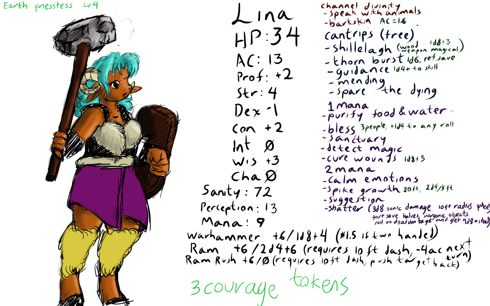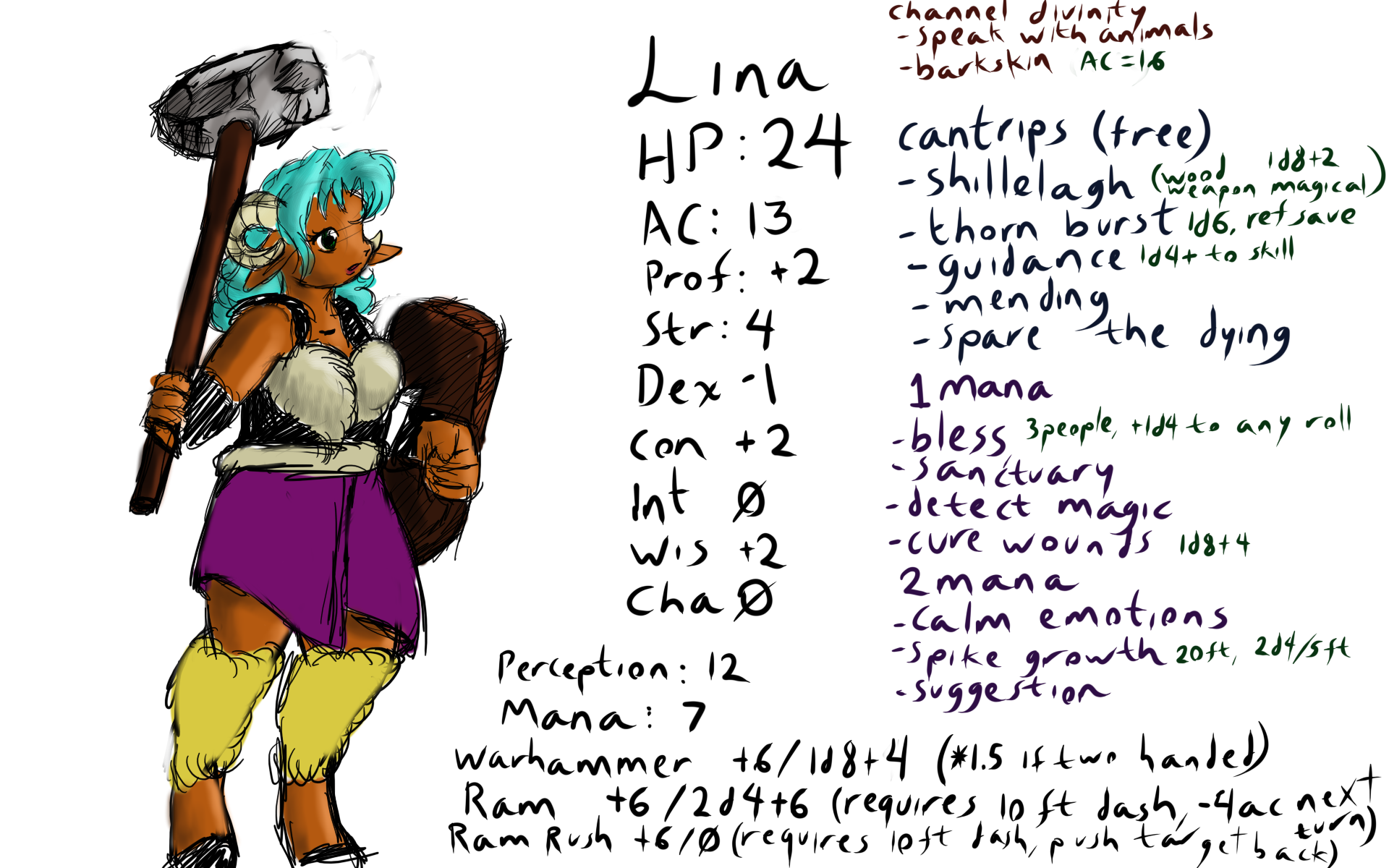 .thorn burst, you bash your hammer to the ground and cause a spike of stone to emerge from the ground (100ft reach) and fly upwards at the target, (1d20+4 to hit) if the opponent is a living being, they are allowed a reflex save (12) if failed, they bleed from the deep wound losing 1hp for 1d6 turns)