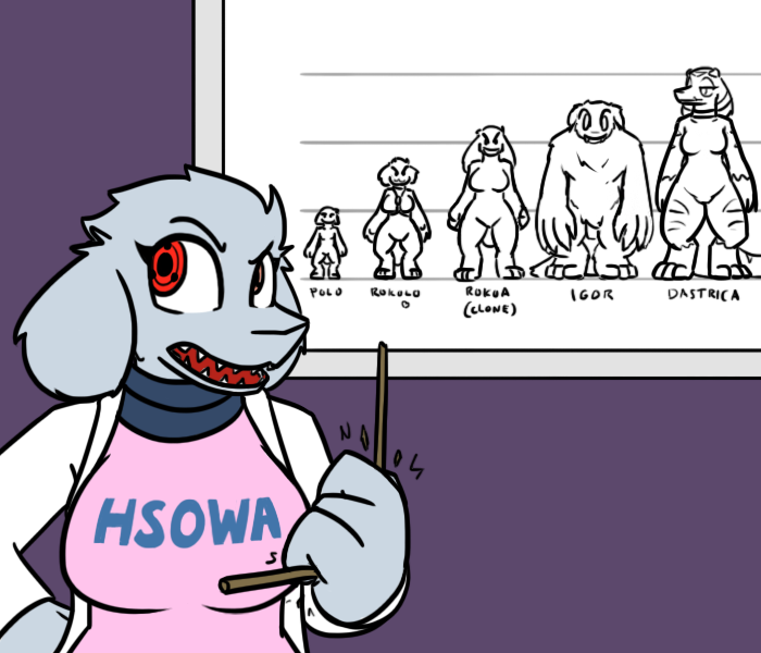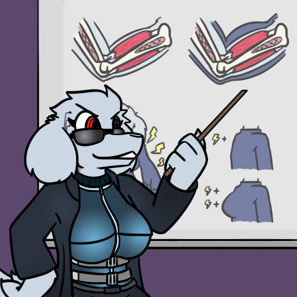 So, how does being curvier make any of this work better? Simple! It’s all about how much power the suit has to work with. Where does a biosuit get its power? From you! The suit feeds off spare electrochemical energy, body heat and a couple of other things in ways that you’re too uneducated to understand. Neumono get that advantage I just mentioned here: since we naturally run hot, our suits receive more power than other species’ do. Regardless of species, though, the more of your body that the suit can be in contact with, the more of that energy it can take from you and the more it can put into making you stronger. Just being a fatass doesn’t work well (a sphere has the least surface for its mass, of course), but having lots of in-out curves and bumps and nooks all increases the exposure. You’d think it’d be a problem to have more areas of the suit that can’t directly access your muscles, like breasts, but the suit reconfigures those spots for superior energy management instead, so that issue is compensated for, and in terms of overall combat effectiveness rather than raw strength, it’s more of an advantage to have them than not. Of course, the suit overcharges your metabolism so that you produce more excess energy for it to collect, so you get hungry and tired faster, in addition to the slow buildup of self-damage from your muscles being overclocked. Hence, “boosted strength at the cost of increased physical stress”. The advantage of increased surface contact is more strength and more stress, but if you weren’t willing to make that trade you wouldn’t be wearing bioarmor to begin with.