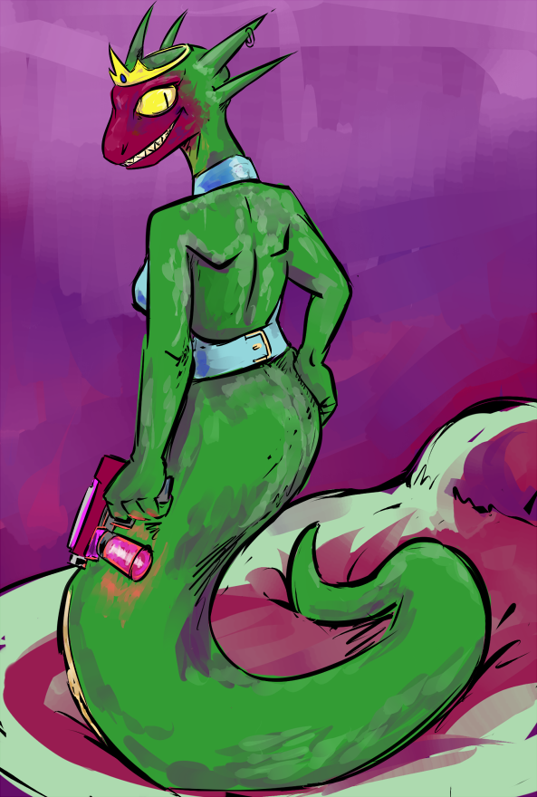 Lizard secretary from the quest The Job by Trout. http://tgchan.org/wiki/The_Job_%28Trout%29