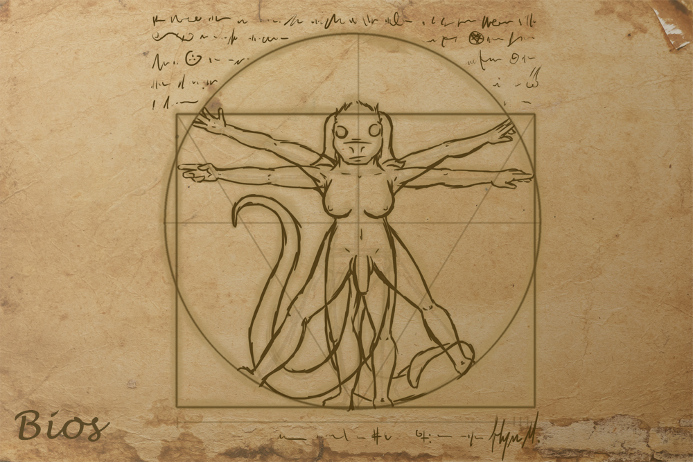 Le Blanc sports a bizarre bio slime instead of traditional underwear. this slime is in fact a living creature, though it is non sentient and incapable of thought, it does writhe and cling reflexively. the slime, known as "biowear", sticks to skin and it's self only, it is scooped and peeled of or dried with sand and scratched away when removed. it is edible and tastes like exotic unknown fruit, however it offers little in the way of sustenance... Le Blanc swears by biowear, wearing nothing less under her suit, claiming it offers better mobility, less chaffing, extremely hygienic, remarkable comfort, unparalleled formfitting (being a fluid), and mild arousal... biowear is manufactured via alchemy and feeds off of bodily fluids such as sweat... Le Blanc is naturally a brunet, thought she constantly dyes her hair, typically white. Her hair never grew on the left side of her head...
