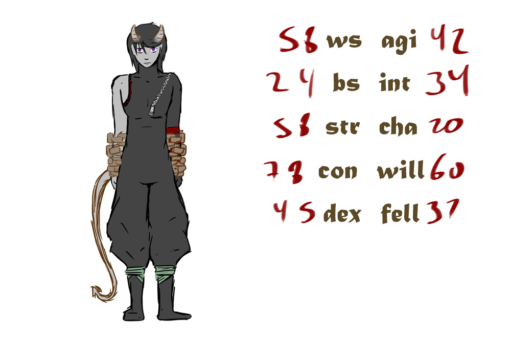 So for artists wanting to use this character... not saying who... just if anyone wants to... she's super strong, can't be crushed, prone to fucking who ever and always at least curious about the latest fetish, never gets tired, is either male or female as you see fit, capable of inflation fetish if that's you thing, fey resistance permits fun with fire, ice, acids and shocks, unnaturally flexible, her tattoos, although mandatory, can be what ever the artist see's fit, her piercings, although mandatory, can be what ever the artist see's fit, likes to be drunk, however this requires quite the dosage...